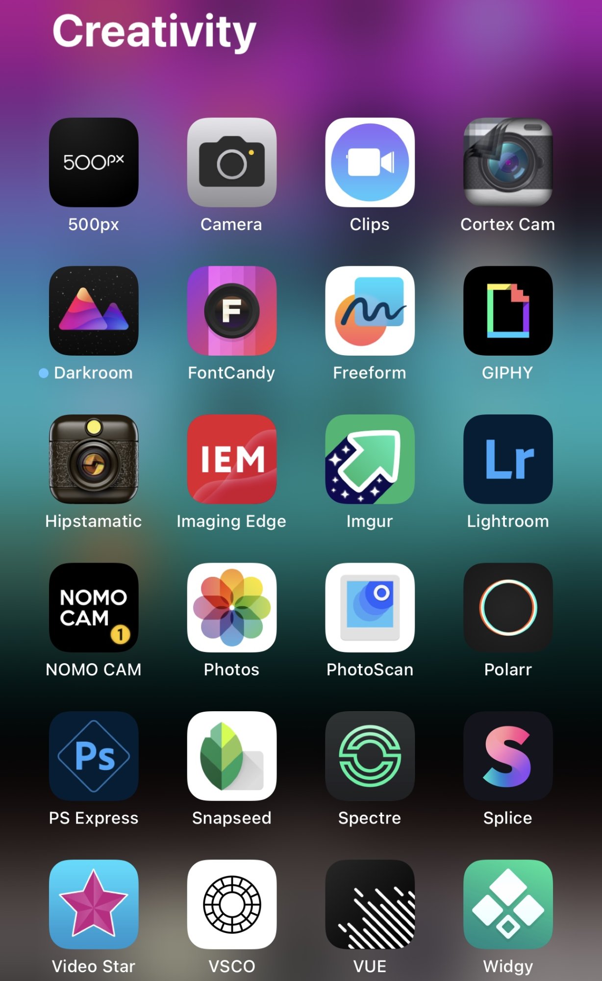 Now look at this, everything under the creativity folder in the App Library. The worst looking are all Apple icons, Photos, Clips (ewww), and Freeform, just bland psych ward clip art.