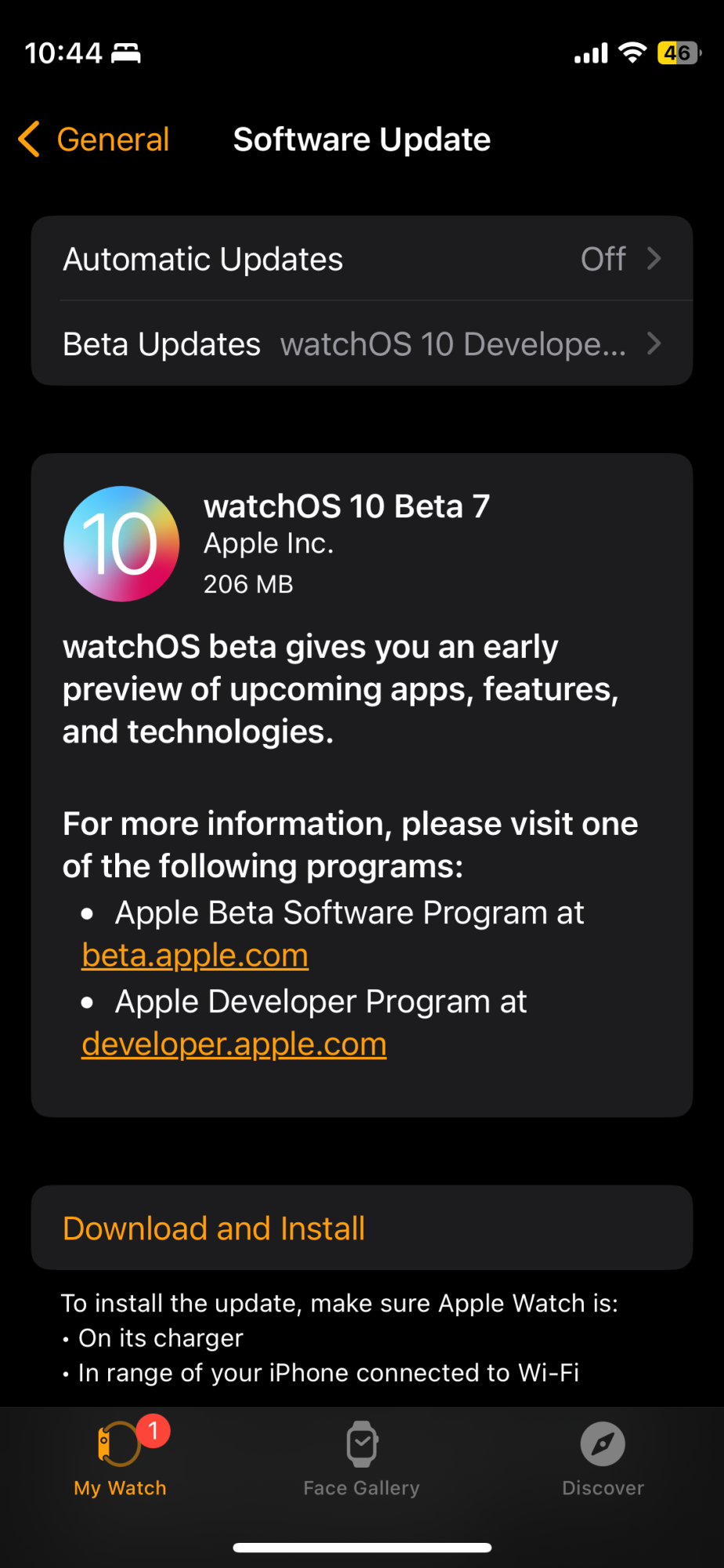 I stopped the iOS beta 7 installation, turned off the beta update and now I got the beta watchOSI cannot even update my iPhone ... the option simply disappeared. Could not even log into my dev account anymore, even if I wanted to.