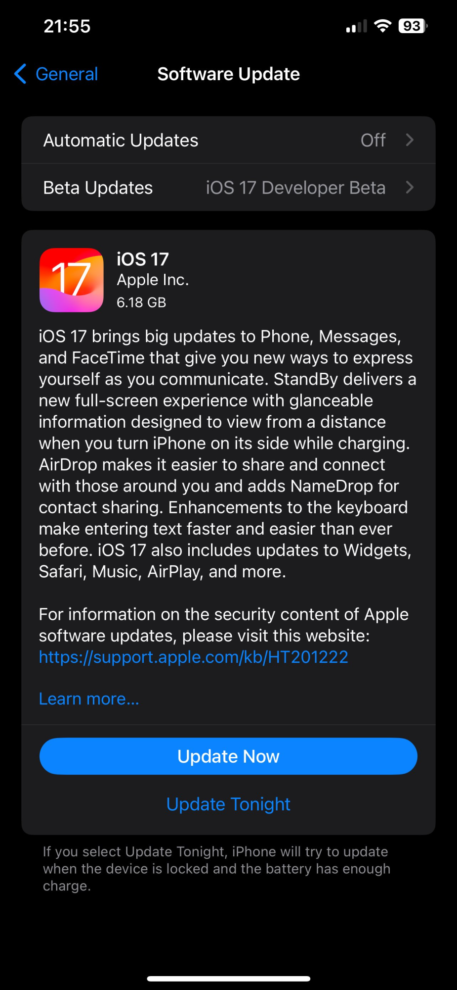 iOS 17 brings big updates to Phone, Messages, and FaceTime that give you new ways to express yourself as you communicate. StandBy delivers a new full-screen experience with glanceable information designed to view from a distance when you turn iPhone on its side while charging. AirDrop makes it easier to share and connect with those around you and adds NameDrop for contact sharing. Enhancements to the keyboard make entering text faster and easier than ever before. iOS 17 also includes updates to Widgets, Safari, Music, AirPlay, and more.