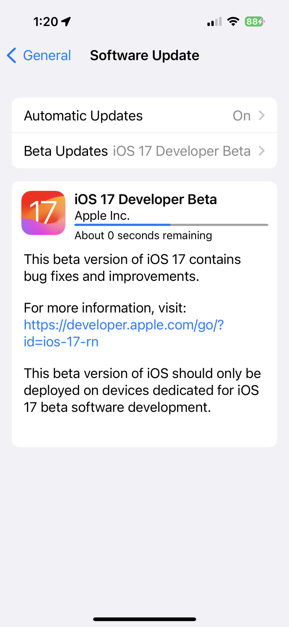 Did you still have to download a profile from the dev site first? Or did it just show up on your device? I’m still seeing the maintenance part on my device so I am stuck waiting.
