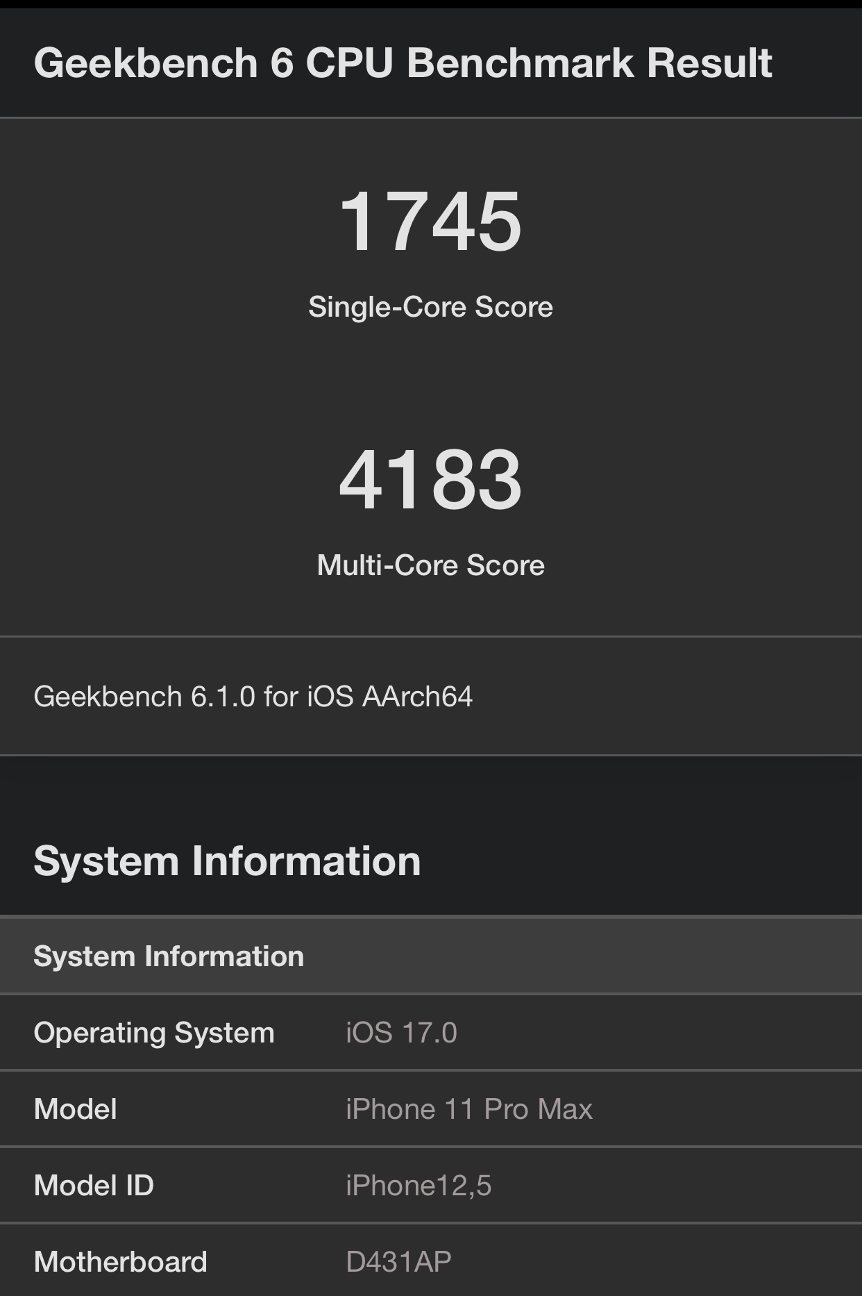 Comparing benchmarks and my 11 Pro Max is still performing very well on iOS 17 beta 8 vs iOS 16, the multi-core is ever so slightly higher on 17 beta and it feels as snappy as ever.