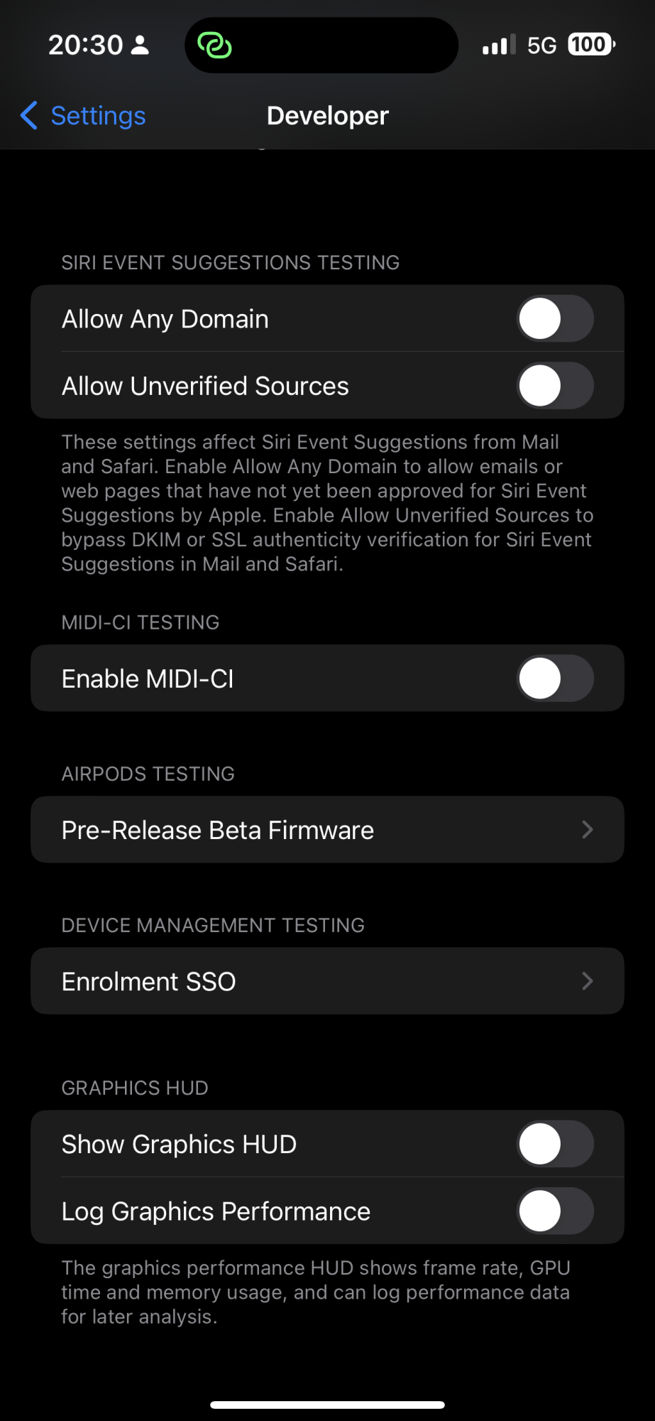 Okay will do so, after I get 17 on the phone. Thanks!You have to open Xcode, connect your iPhone, then a Developer section appears in the Settings on the iPhone.