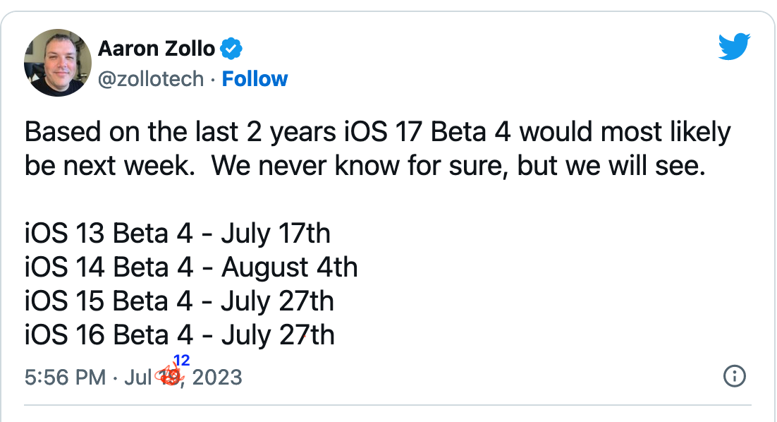 I think He is wrong about this I think it will be out today plus the re-release doesn't count as major beta it counts as a minor to fix or add some security, not regular update.The struggle is real. Some of the people here did predict next week… 😩