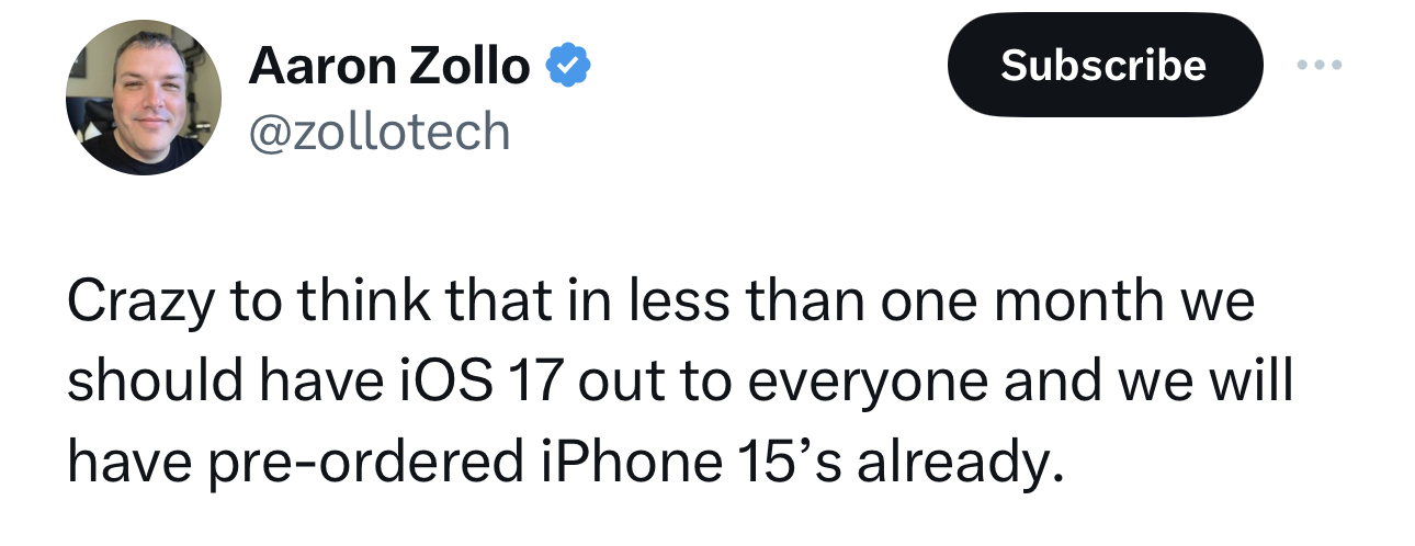 Also, MacOS’s x.0 public release for the last 5 years or so, have always come after iOS’s x.0 release (usually October when iOS is September), with MacOS’s betas not going weekly when iOS goes weekly. So, of course Sonoma is going to release separately to iOS 17.