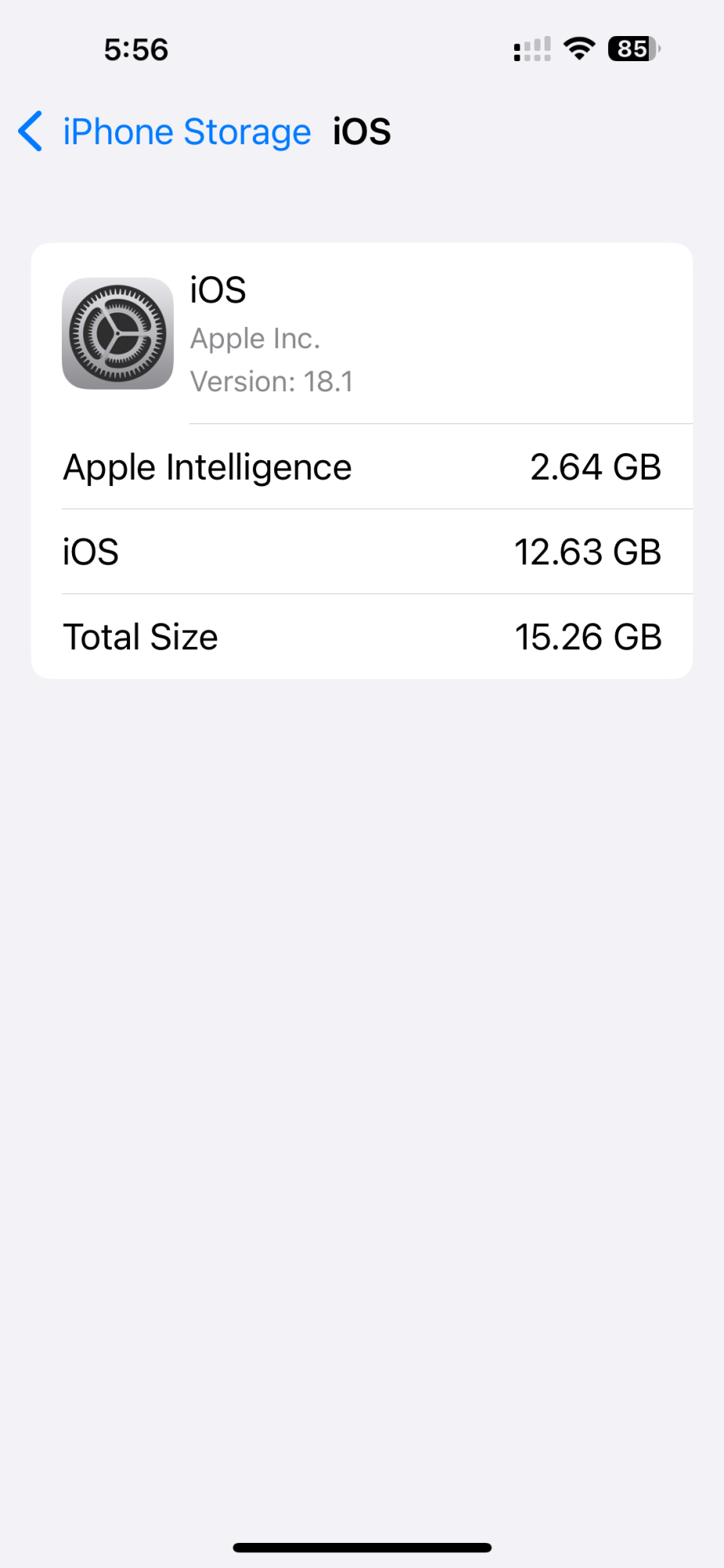I'm getting the feeling that 2.63GB is the correct size for b2 and those that reported 5.18GB had two copies of the model for a period of time which was eventually cleaned up.I concur. On my iPhone 15 Pro, it was 5.18 yesterday after the update (and on Wi-Fi) and this morning it's back to 2.63. Probably most who see it now as 2.63GB just never saw the initial 5.18GB.