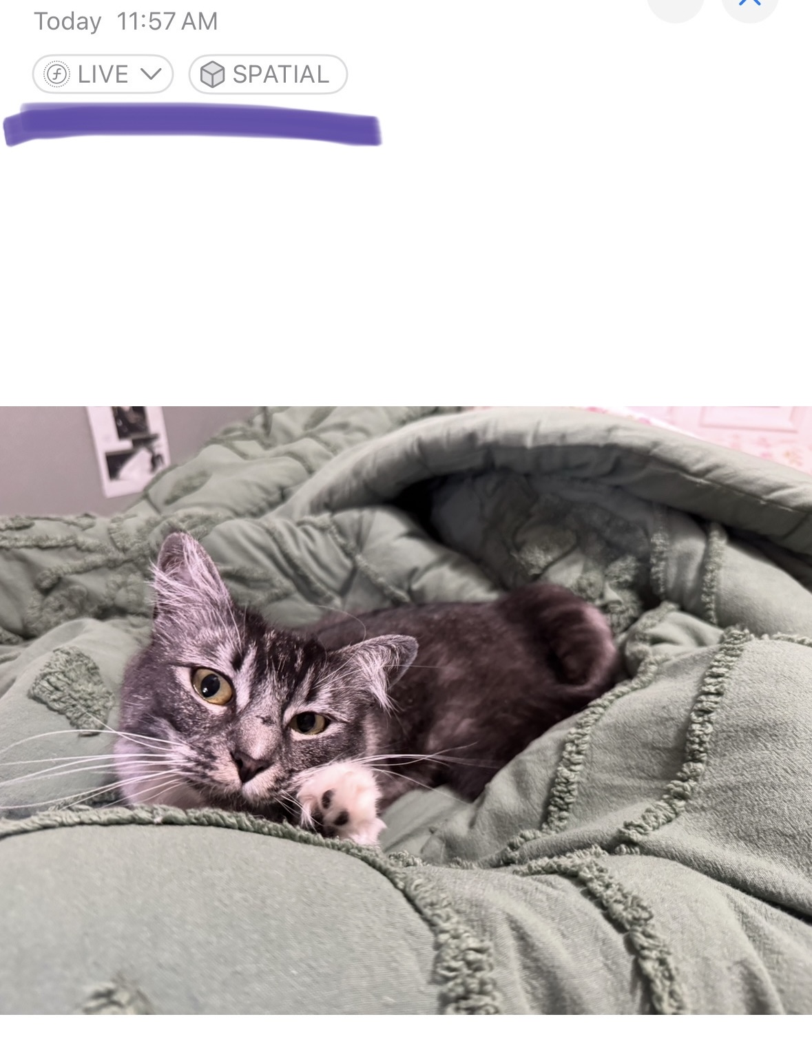 That makes sense, thanks. That also explains why it claims the photo is 24MP despite the fact it couldn’t be 24MP in Spatial coming from a 15P.When viewing on the Vision Pro there is an icon you can press to switch between seeing the spatial image and just a normal flat image. With the iPhone spatial Live Photos, you see a still spatial image, but when you turn to the flat image you can see the live video.