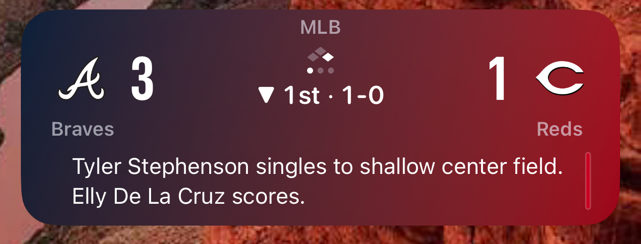 I have the M1 iPad Pro with iOS 18.1 Beta 4. At this point, I do not get live activity with sports scores (MLB) on the iPad Pro. I get live activity scores from the sports app on my iPhone 15 Pro Max as mentioned in your post above.It was like that in the RC for iOS 18, since my iPad Pro 2018 had it like that, but in iOS 18.1 beta 3 it was still pulling from the TV app and it was flat black. Once I updated my iPhone 15PM to iOS 18.1 beta 4, it fixed it to how it should be, like that with the color, so iOS 18.1 beta 3 must’ve had the old way to do it still via the TV app, and iOS 18.1 beta 4 implemented all of the changes from the iOS 18 RC that enabled live activities properly from the Sports app.