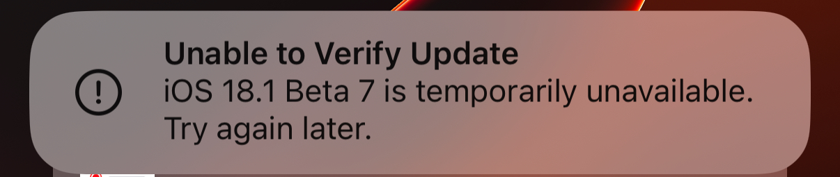 anyone having issues installing? Both my M4 ipad pro and 15PM are saying unable to verify the update after preparing and downloading it. Both are on developer beta and were on beta 6