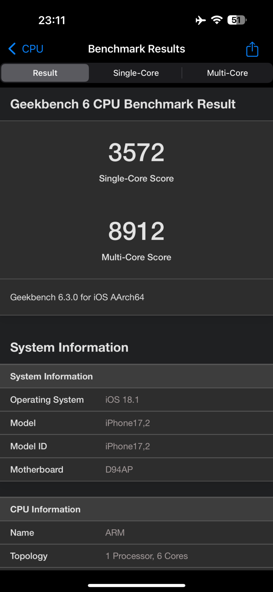 If anyone has a higher Geekbench 6 score on their 16 pro max reply to this, I doubt there is... I don't know why YouTubers can't get close to this.