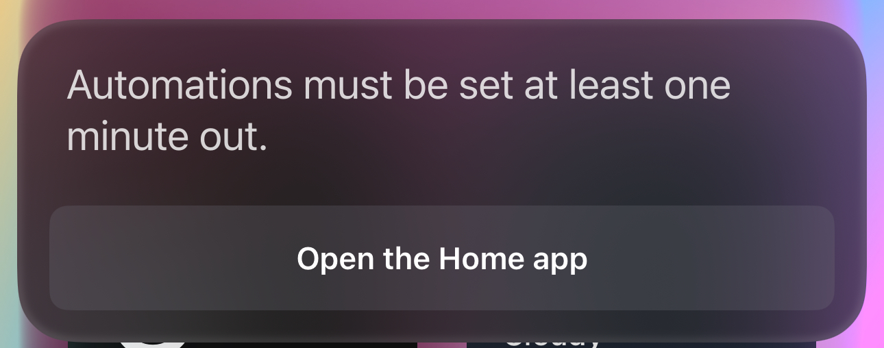 I'm still getting the issue with Siri when I ask to do something home automated for a future time like "turn off the lights in 10 minutes" it won't be able to do it and replies with: Automations must be set at least one minute out. But that's precisely what I'm doing.