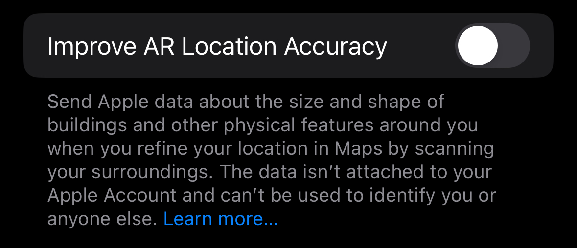 I am not sure, but I don't think that's it. I don't have that option, but I think 14 pro doesn't support that.I wonder if that replaces "Improve AR Location accuracy"?