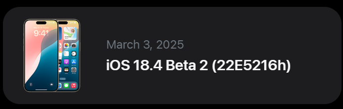 you dont have 18.4 dev beta 2. See build number below:Missing it on my 15 Pro Max as well. Doesn’t show up in either the control center options or the action button page. Any luck with it suddenly appearing on yours?View attachment 2488043View attachment 2488044View attachment 2488045View attachment 2488051