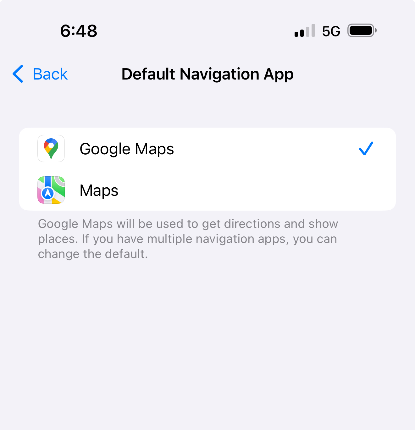 Apple have finally allow the selection of Google Maps as a default Navigation app in this build.