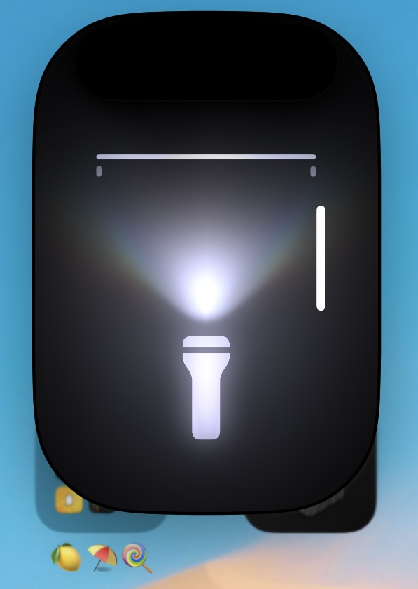 - Flashlight now has a new pop up in the Dynamic Island and can be swiped right and left on it to change the beam. It has three settings