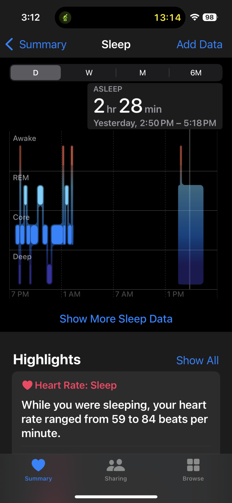 Of course! I highlighted the info from my nap yesterday (from the above screenshot). Unfortunately doesn't give me the data for REM, Core and Deep sleep. But, I'm glad it finally shows the times and automatically adds it to the 'time asleep' for the day.Omg I’ve hoped they would add this for years! Thanks for sharing