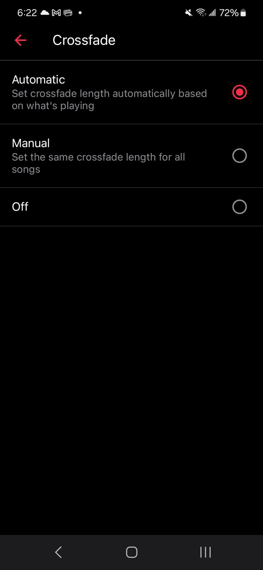 Music players including Apple Music don’t cross fade between in-order songs of the same album.Ever since I learned that some albums have songs that transition into the next song seamlessly, I turned off crossfade, probably 14 years ago or so.![]()