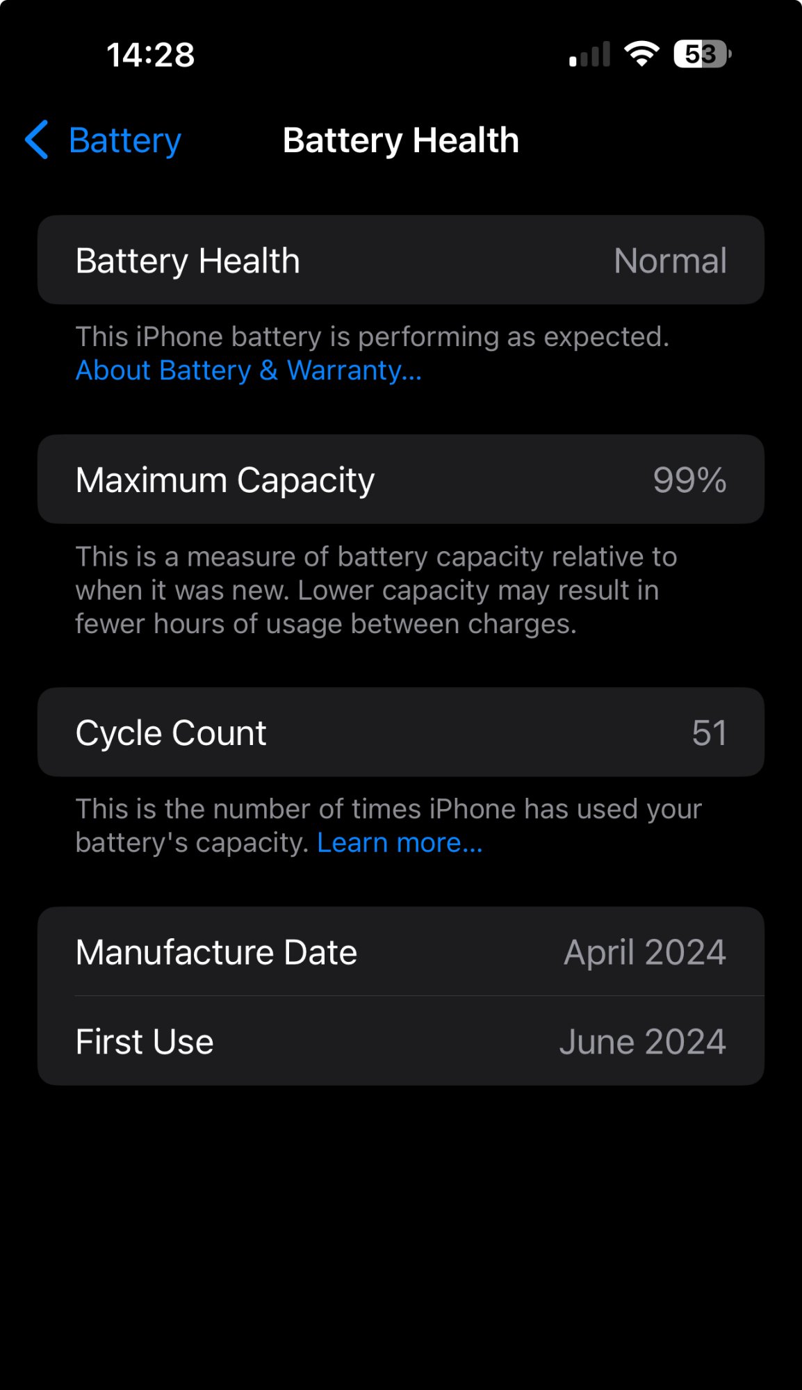 Nice to see someone in a similar boat. Mine was an AppleCare replacement (broken screens, did express). Never had beta on it, but has been restored twice. I think the batteries are 1. Potentially lesser quality, and 2. More watched since we can see the info on them now.There is excessive heat during charging on my 15PM. I was using 30w which generates heat anyway, even using an Apple 18w charger it still gets hot. Imo this is partly to blame for my battery health dropping to 99% at just 50 cycles.