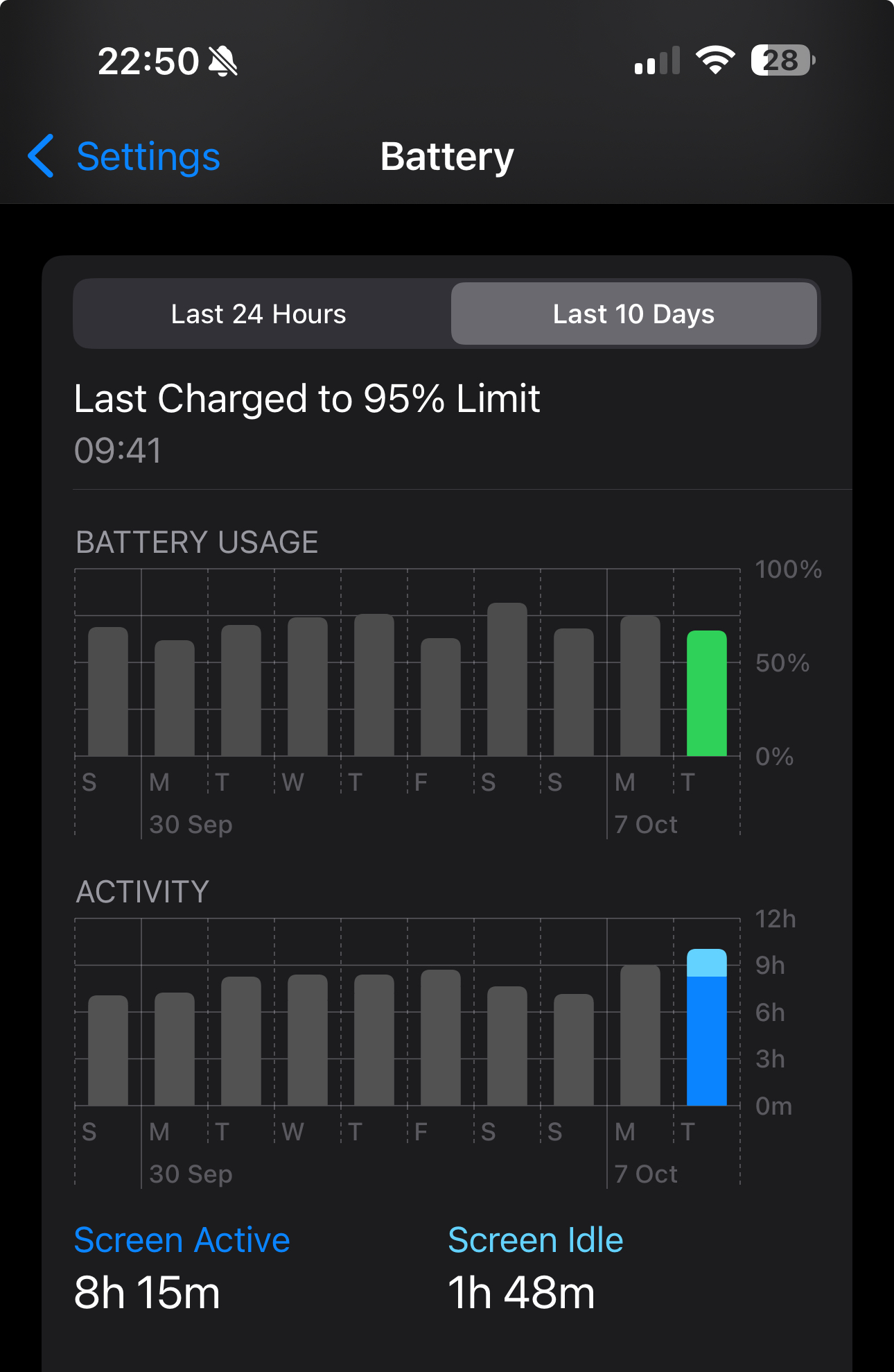 P.S. I am not sure why there is no battery chart before noon. No idea. I didnt reset it. I updated iPhone on Saturday.