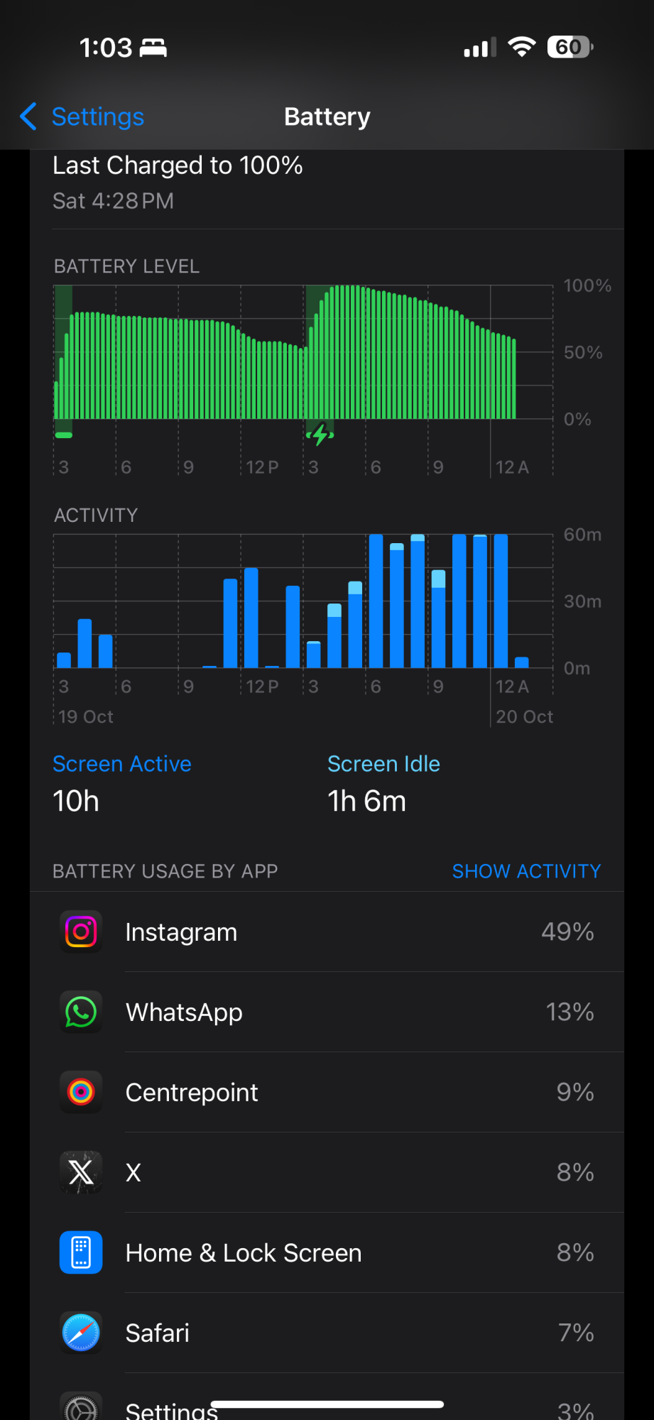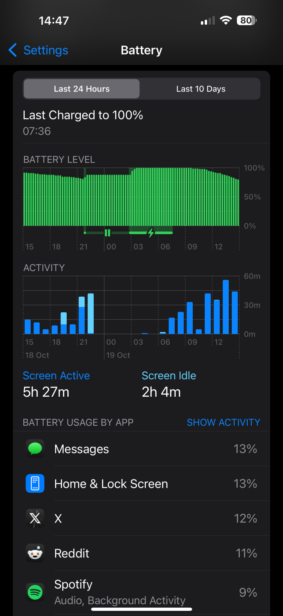 Wow, so pretty much what I thought. Our expectations aren’t extreme at all. I totally get the phone losing battery while using it, but the drain while idle is the problem. A 3-year-old iPhone shouldn’t be outpacing a brand-new one.