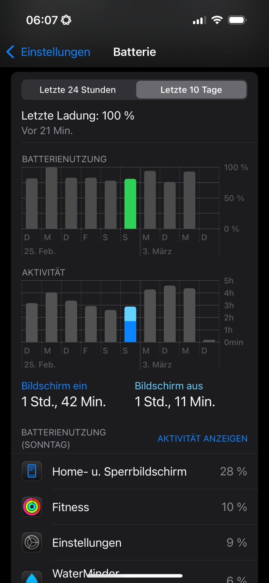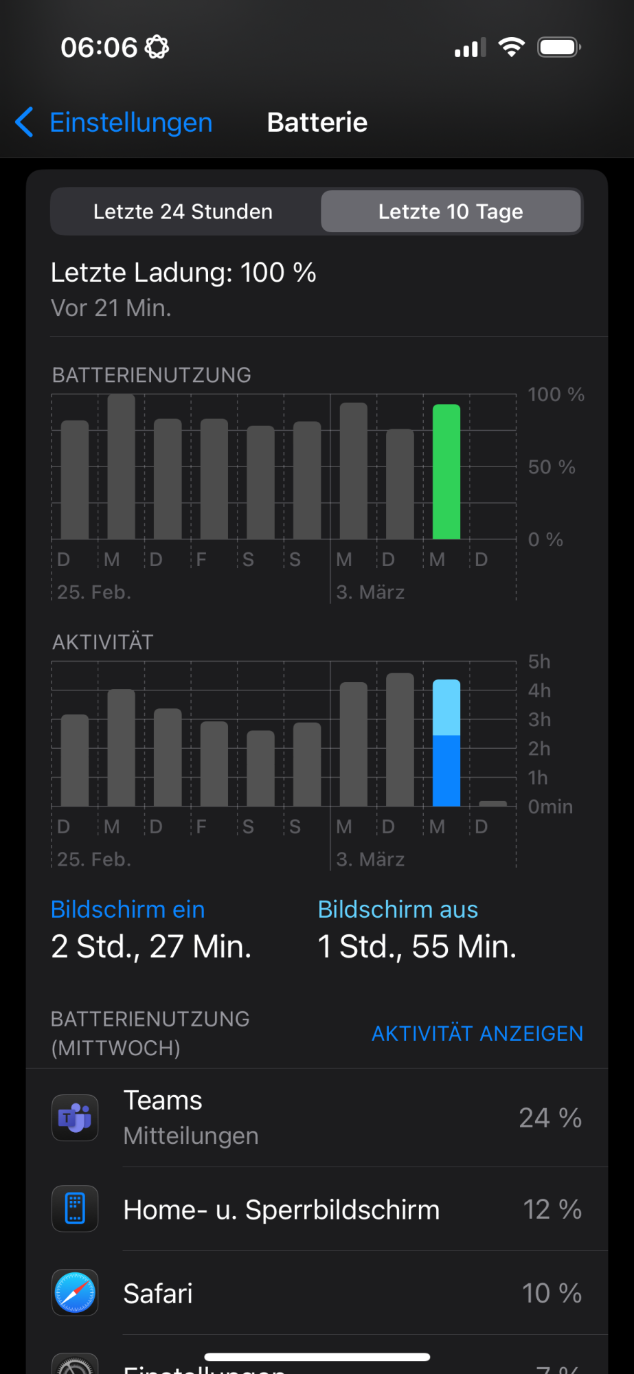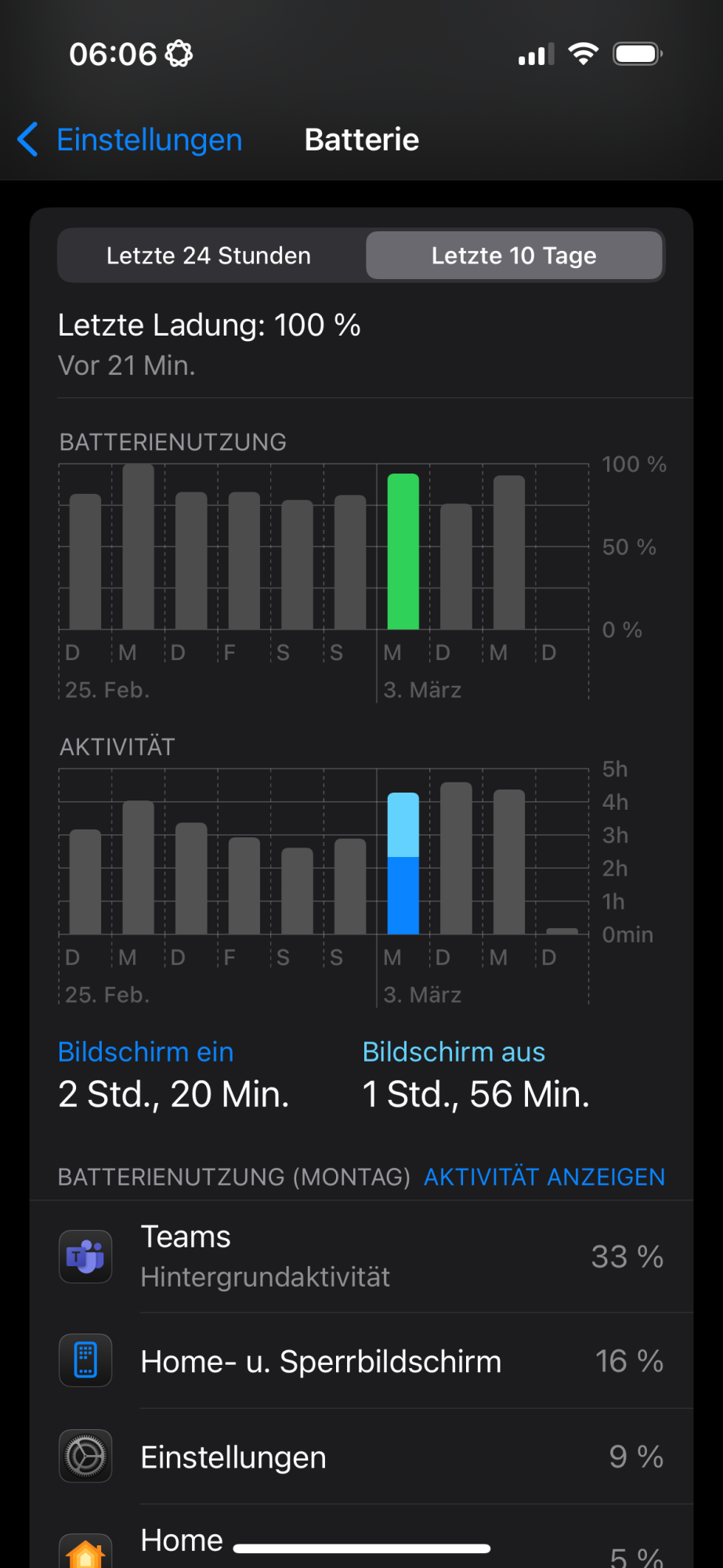 => around 4.3 % per hour, which is, taking in consideration I had 1.5h Teams calls on the phone today, actually kind of okay.