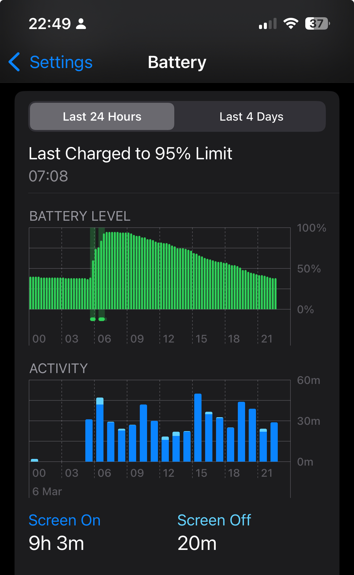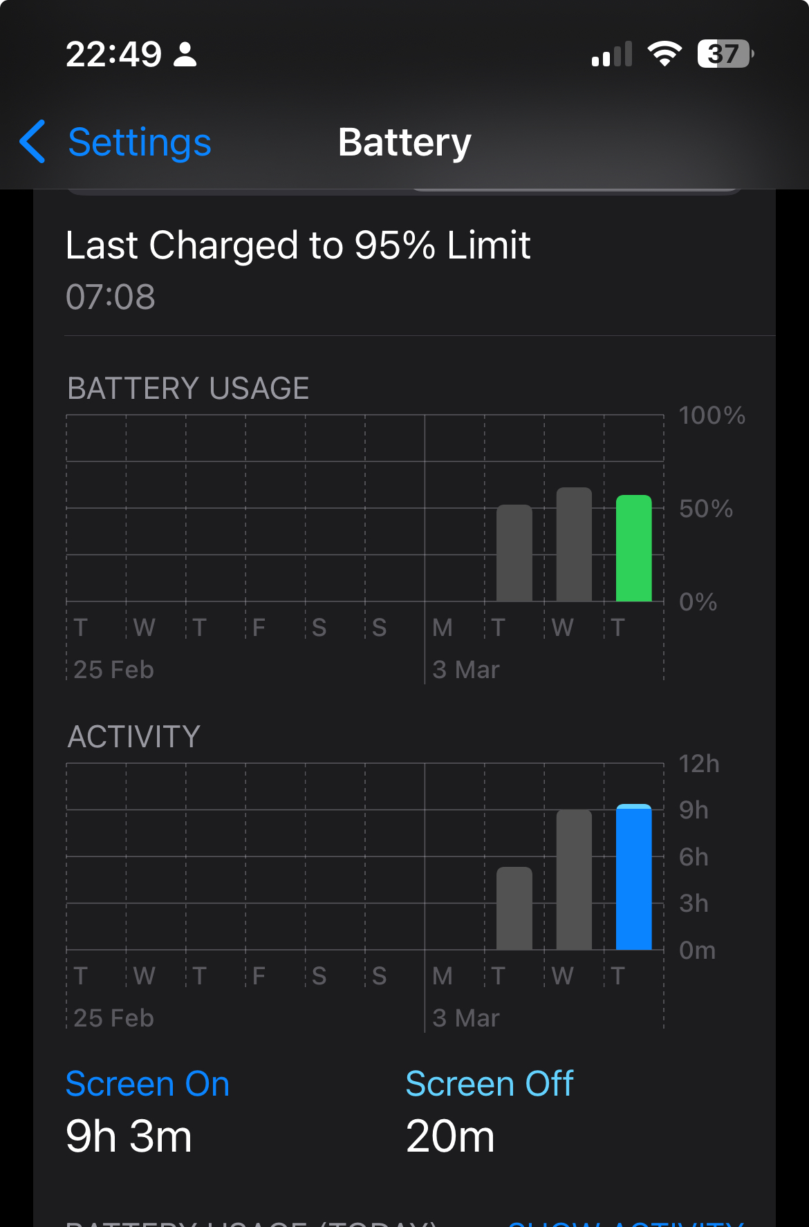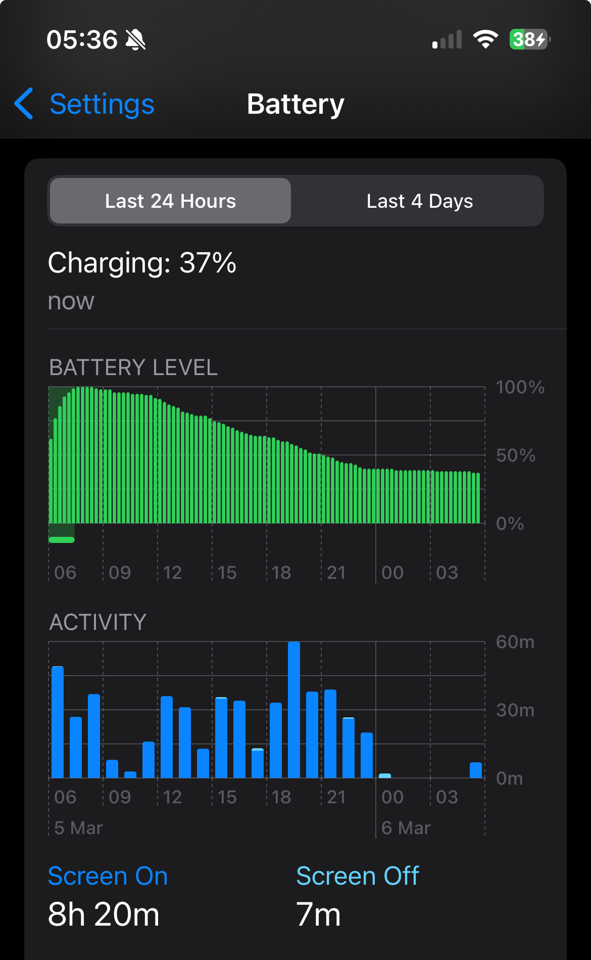 => around 4.3 % per hour, which is, taking in consideration I had 1.5h Teams calls on the phone today, actually kind of okay.