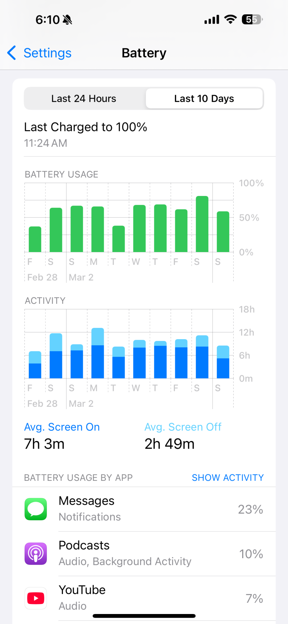 With only 3h of usage (all together, screen on and off)?Ain’t bad that’s completely fine for battery to go down like that off the charger. But I turn off background app refresh entirely, so why not just turn it off?