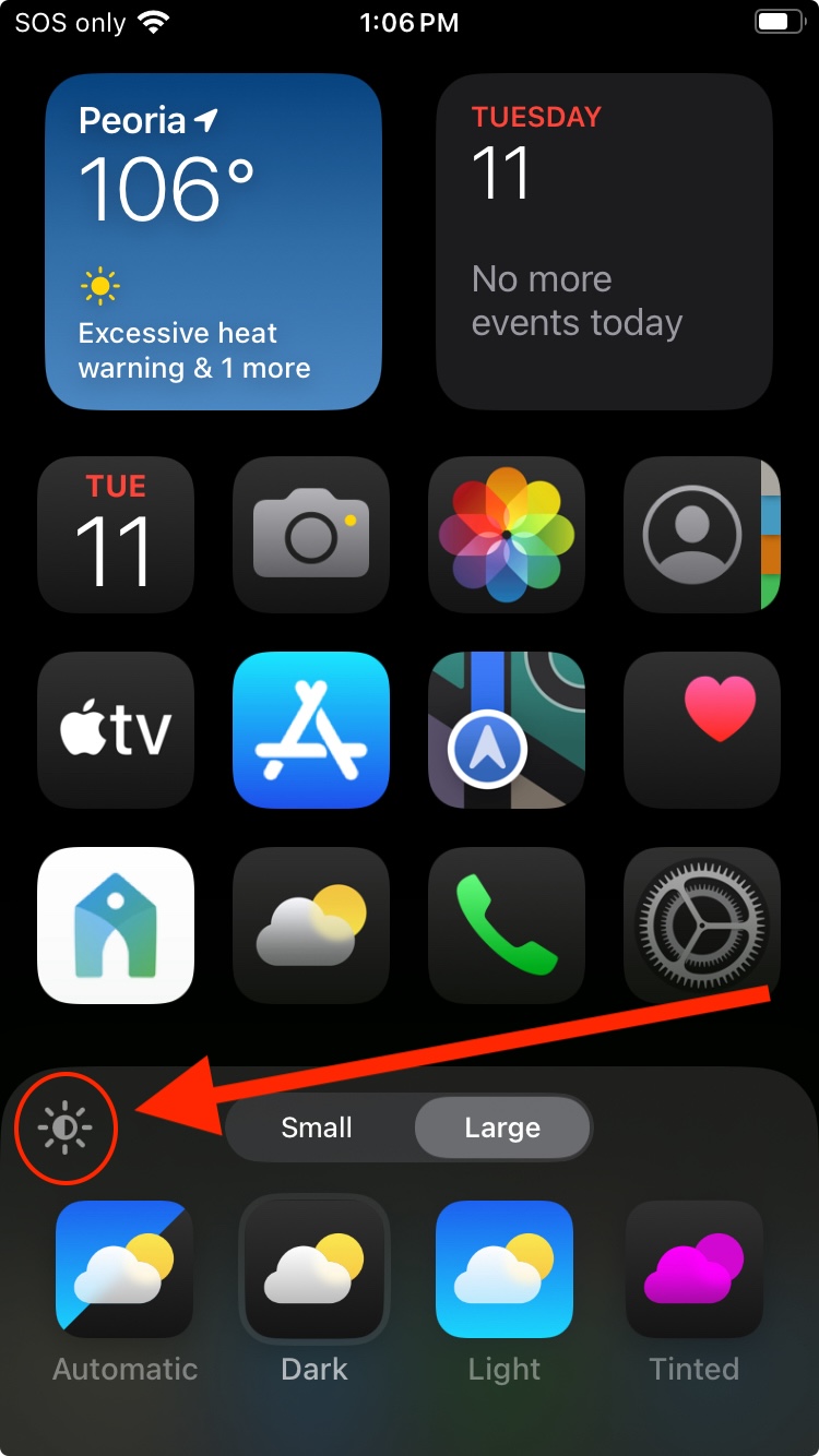Seems to darken/lighten background; it makes sense you wouldn't see a difference given you have a black wallpaper.Has anyone noticed the effect of the light icon on the Homescreen customize control? If you have DARK or TINTED icons, a little light button appears on the upper left corner of the controls... but as far as I can tell, it doesn't change anything (yet)... it toggles between two states with no noticeable effect on the screen or icons.