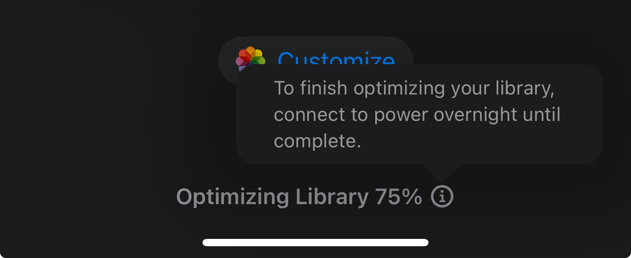 Anyone know what the Optimizing in Photos is for?