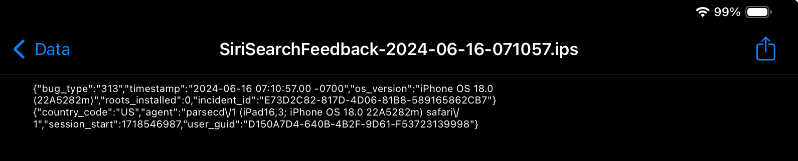 On a side note, maybe someone has a bit of knowledge, haven’t use Siri this morning on anything yet I have about a page and a half of Siri Search Feedback entries (see attached for an example). All entries are the same type.