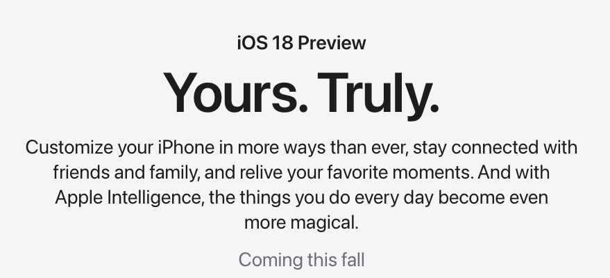 iOS 18 webpage also says iOS 18 is coming this fall as well..