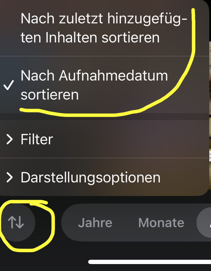 This menu moved to the left down corner, right in the album, there you should be able to sort the pictures:I found something missing in iOS 18 Photos. My family has a shared Album and we all added photos at different times, I would like them to be sorted by the date the picture was taken and not the date they were added to the album. my daughter is on iOS 17 and she showed me a drop down with the option to sort the photos but in iOS 18 that same drop down isn’t available. Not sure if I am just missing it or they removed it. Does any know? The first attach is iOS 18 the 2nd is iOS 17.