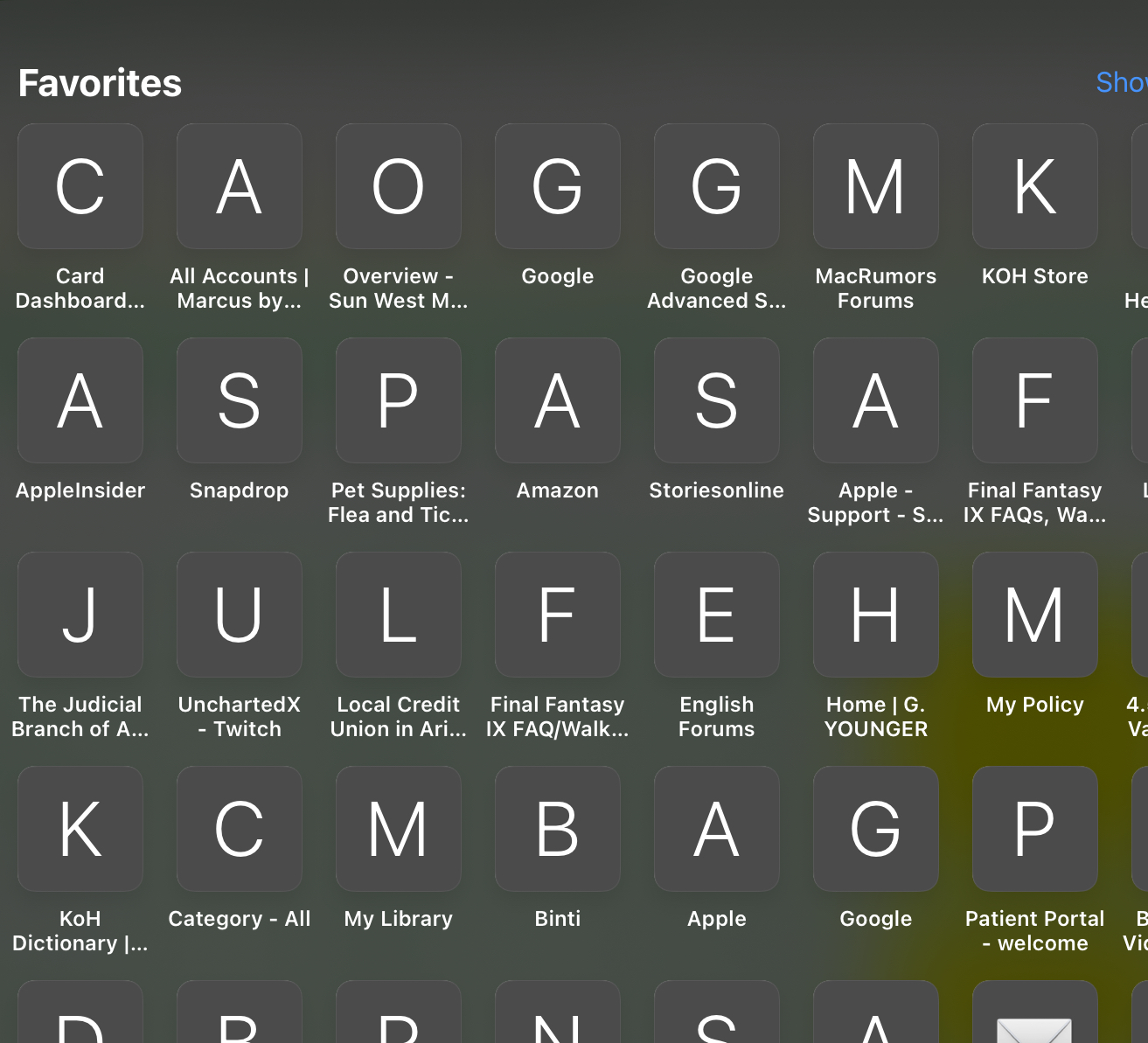 Safari > Bookmarks - all switched to generic grey. Rebooting the phone or opening the link brings back most.