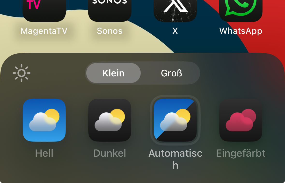 I’ve got a question regarding the new homescreen customization with a custom wallapaper. I’m not sure if this is a bug or not. When I set it to dark, the icons get dark and the custom wallpaper dims. When set to light, the wallpaper and the icons become light again. BUT if set to automatic, just the icons are switching between dark and light mode, not the wallpaper . It remains light instead of dimmed. I would like to get the custom wallpaper dimmed automatically when switching between dark mode and light mode.