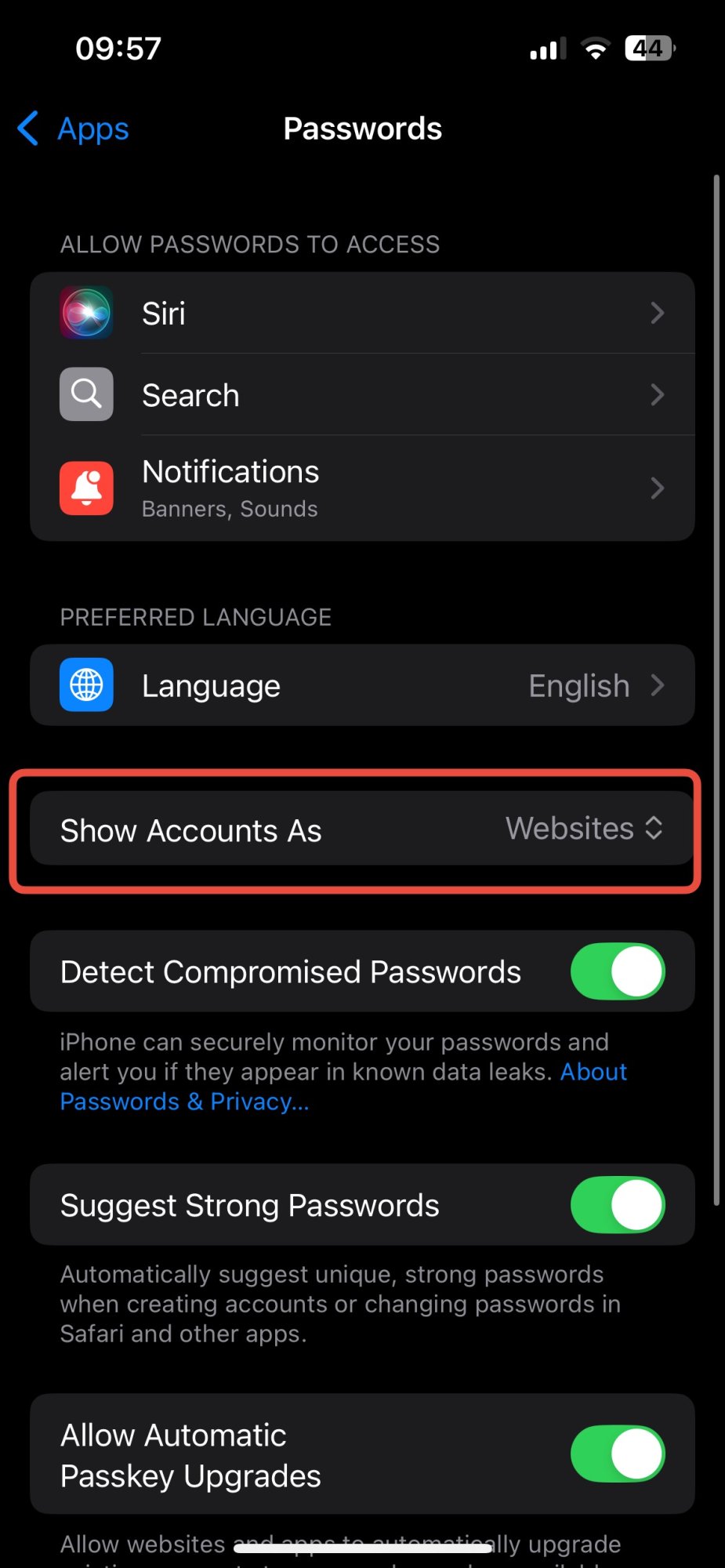 Granted, I think this is a keychain problem and not the Passwords front end to keychain, which is basically what the app is. There are thousands of entries I’ve built up over the years and it would take an eternity to prune them all. For now, until I figure out a way to solve that problem, I’ll stick with 1Password. I wish Apple would give me a list for an account on the same domain all the passwords and let me auto-prune them.