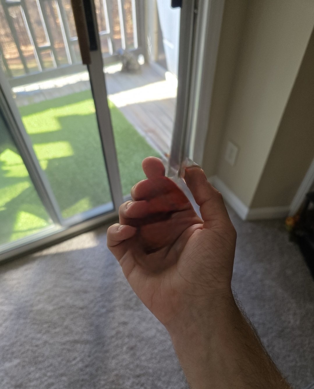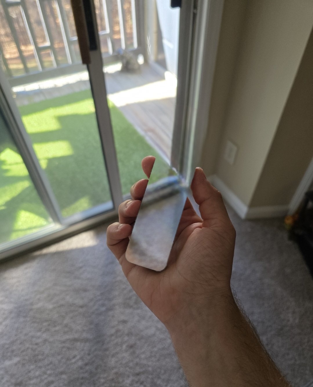 It's because he took the picture twice. He took it with the Samsung and cleaned it up, and then took it with the iPhone and cleaned it up. But yeah, he should have just sent the photo to the other device and cleaned up the exact same photo to avoid that inconsistency.The hand is in a totally different position. I highly doubt that this is reliable.