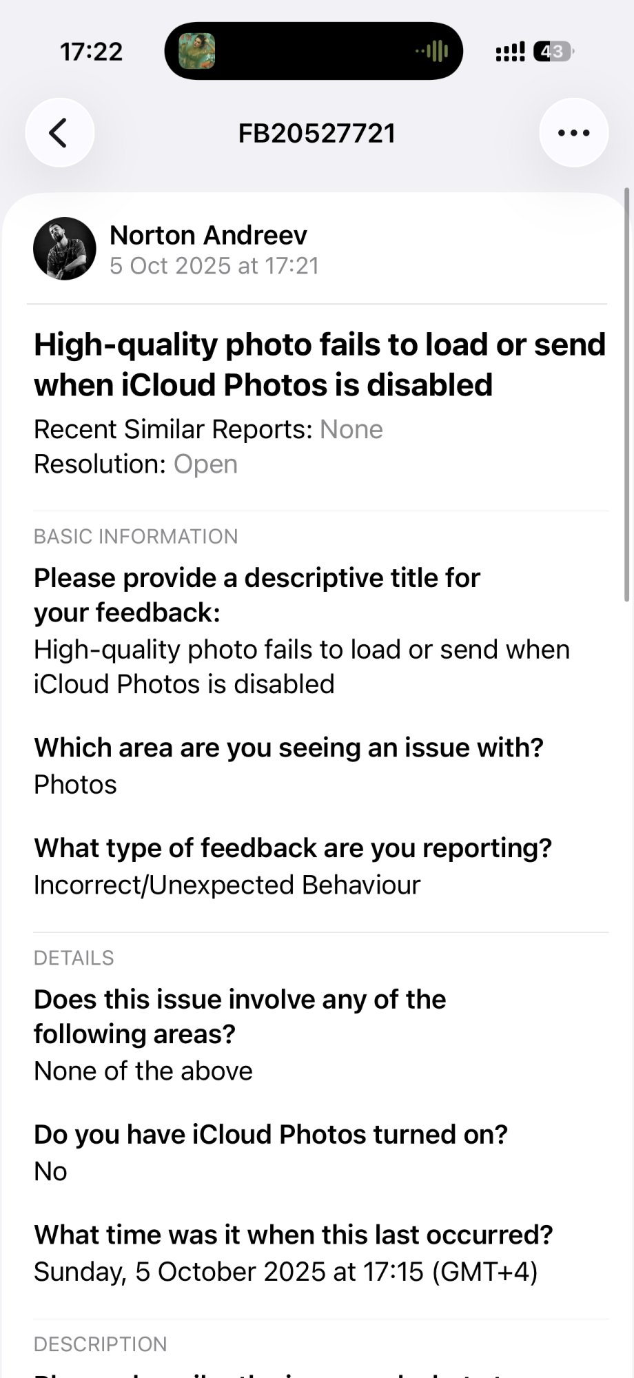 anyone else getting an error when taking a photo using the ultra wide camera (close up picture)? I keep getting the error "Unable to load photo - error occured while loading a higher quality version..." I don't use optimize storage for photos so it should be keeping high quality on device. Can't figure it out.