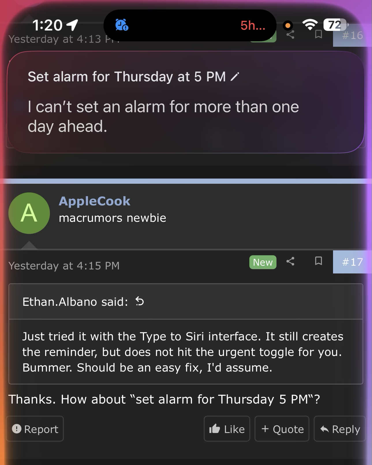 I currently have a daily automation which reads my reminders, and if it finds one matching a pattern (date is the next day and title starts with "Alarm: " then it marks the reminder as done and sets an alarm for the time the reminder was due.