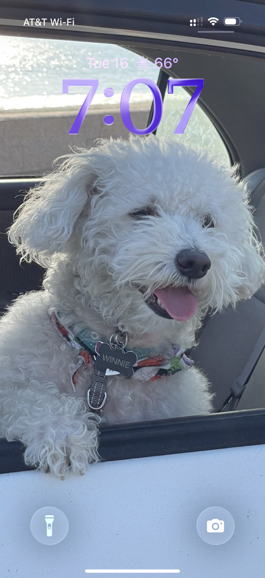 You can make the digits take up half of the screen, though if you have any widgets, they will slide down to the bottom of the display. In addition, if you have a depth effect applied to a photo and pinch to crop, the time will automatically adjust to accommodate the subject. Bear in mind that the ability to expand the time depends on the selected photo – if there's no space above the photo's subject, the drag handle won't appear.