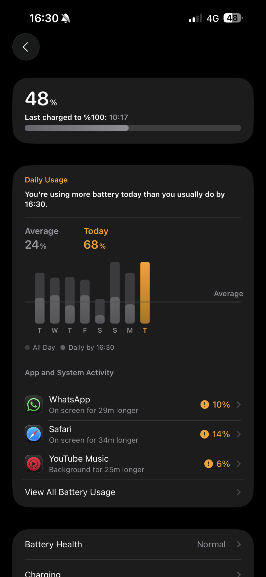 I’m in the same boat. I set the charge limit to 90%, and my average screen-on time is 8-10 hours a day.It completely depends on the day, usually multiple hours. I can't give any specific statistics because they all got wiped when I restored. On iOS 26 it certainly didn't stay at 100 for very long.