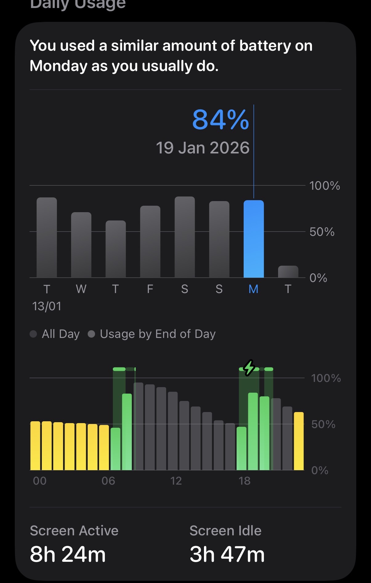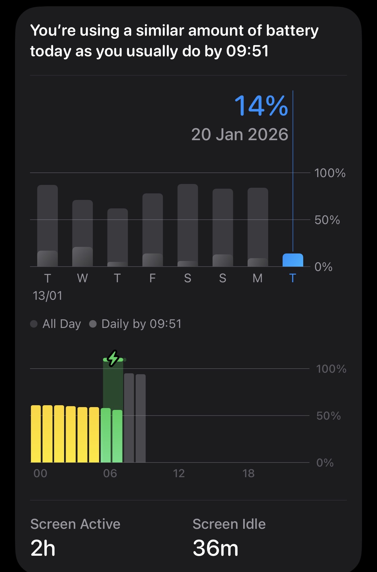 For context, I still have a remaining 2% and last night at 00:00 I had an 88% of battery.