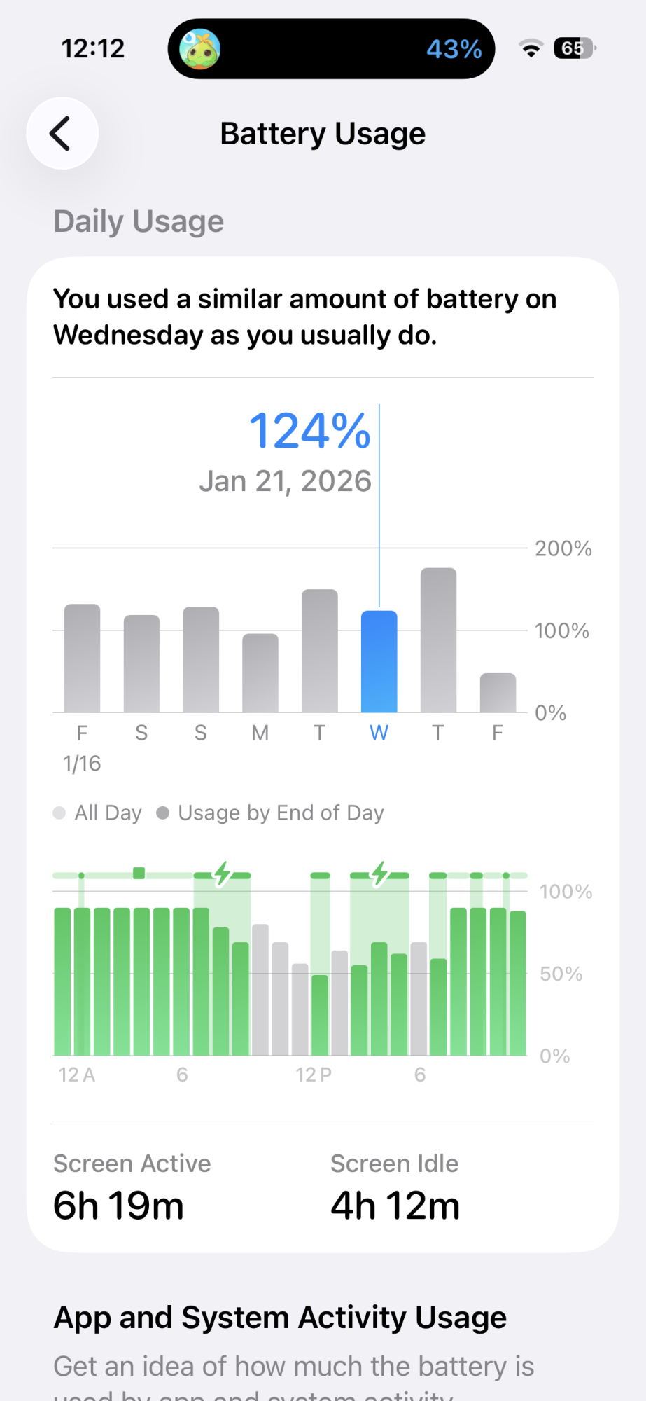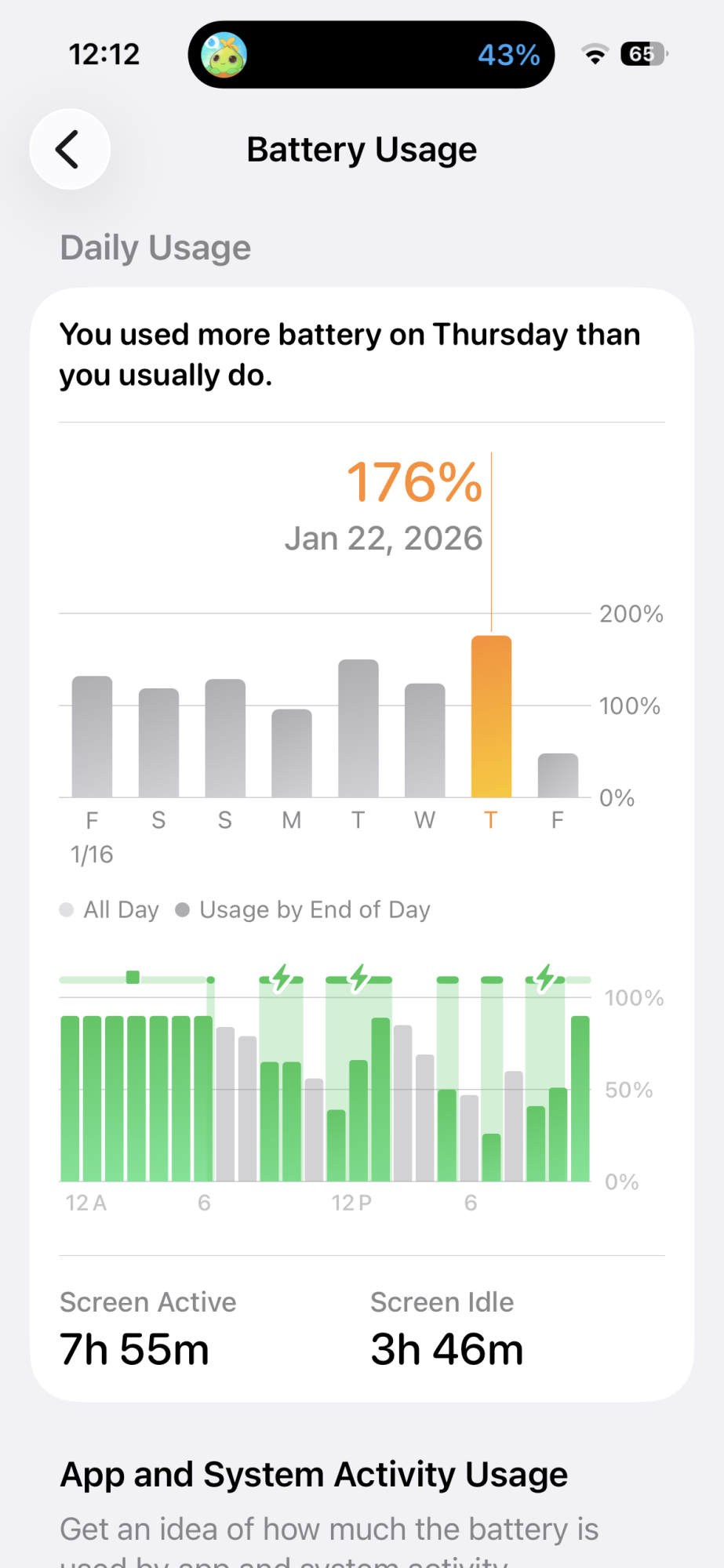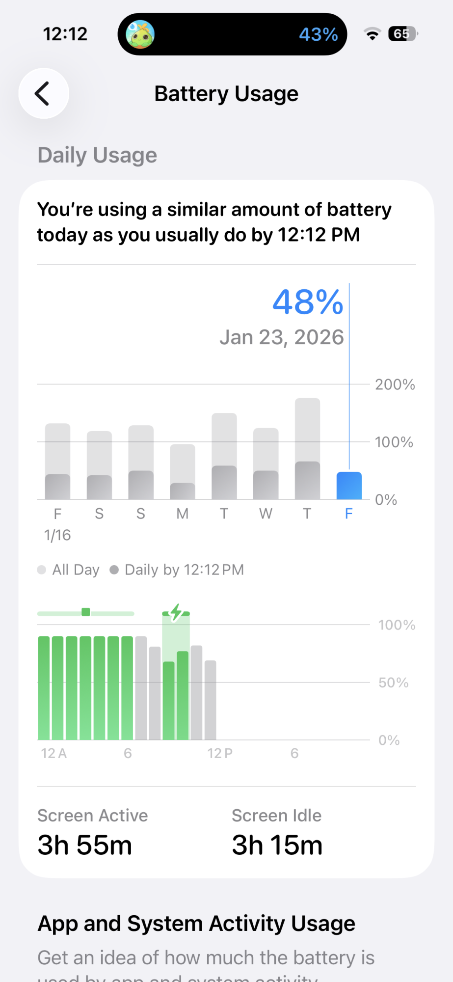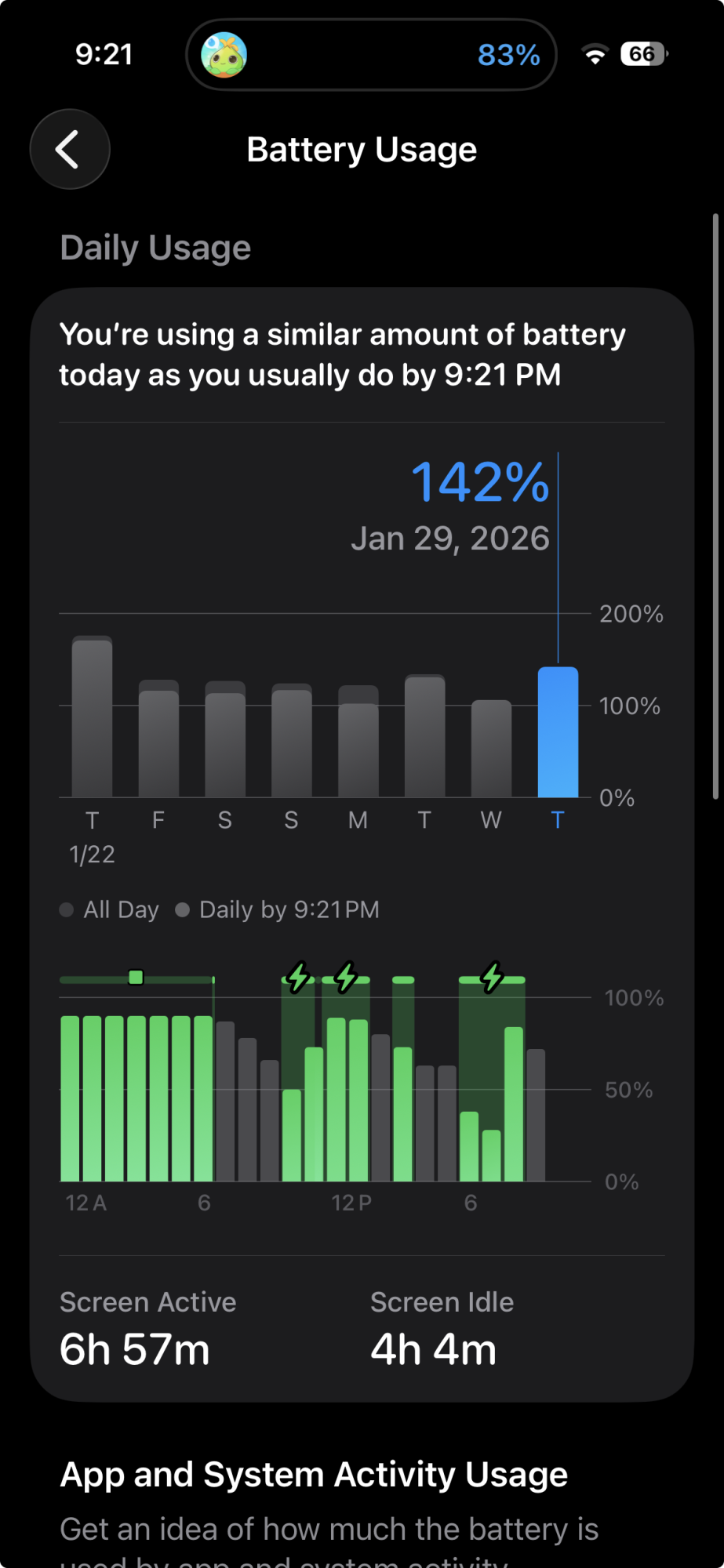 rly sir? I had more orange usage bars in 26.2.If I understood you correctly, iOS 26.3 beta 3 holds worse than release 26.2