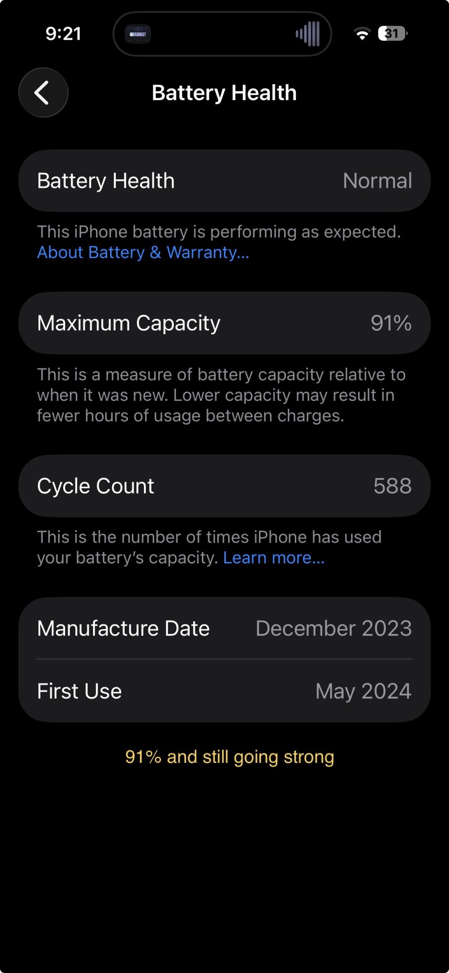 Holding out well then! Close to 2 years old and still above 90% health 👌🏻