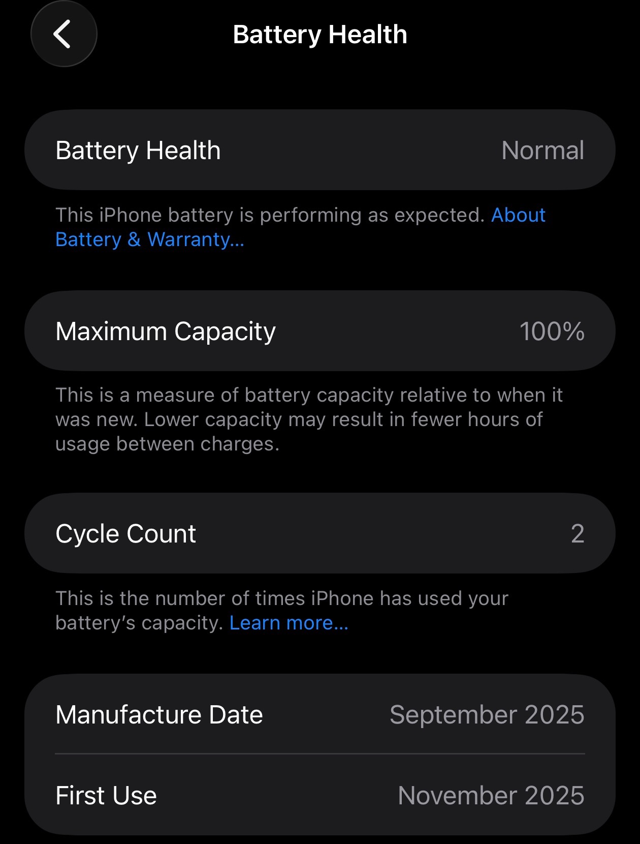 I got an iPhone 17 Pro just over 2 weeks ago and noticed that the new Battery Usage screen on iOS seemed really inaccurate. So when I traded in my 17 Pro for an iPhone 17 Air on Sunday, November 3 - I figured I'd do a test. My work consists mostly of desk work. I also have chargers/batteries everywhere (they are a hobby of mine). So I kept my 17 Air plugged in as much as I could (some days - all day) and ... sure enough, I have 2 cycles despite only using, according to iOS 26 Apple Battery Usage, 20% of my battery during this time.