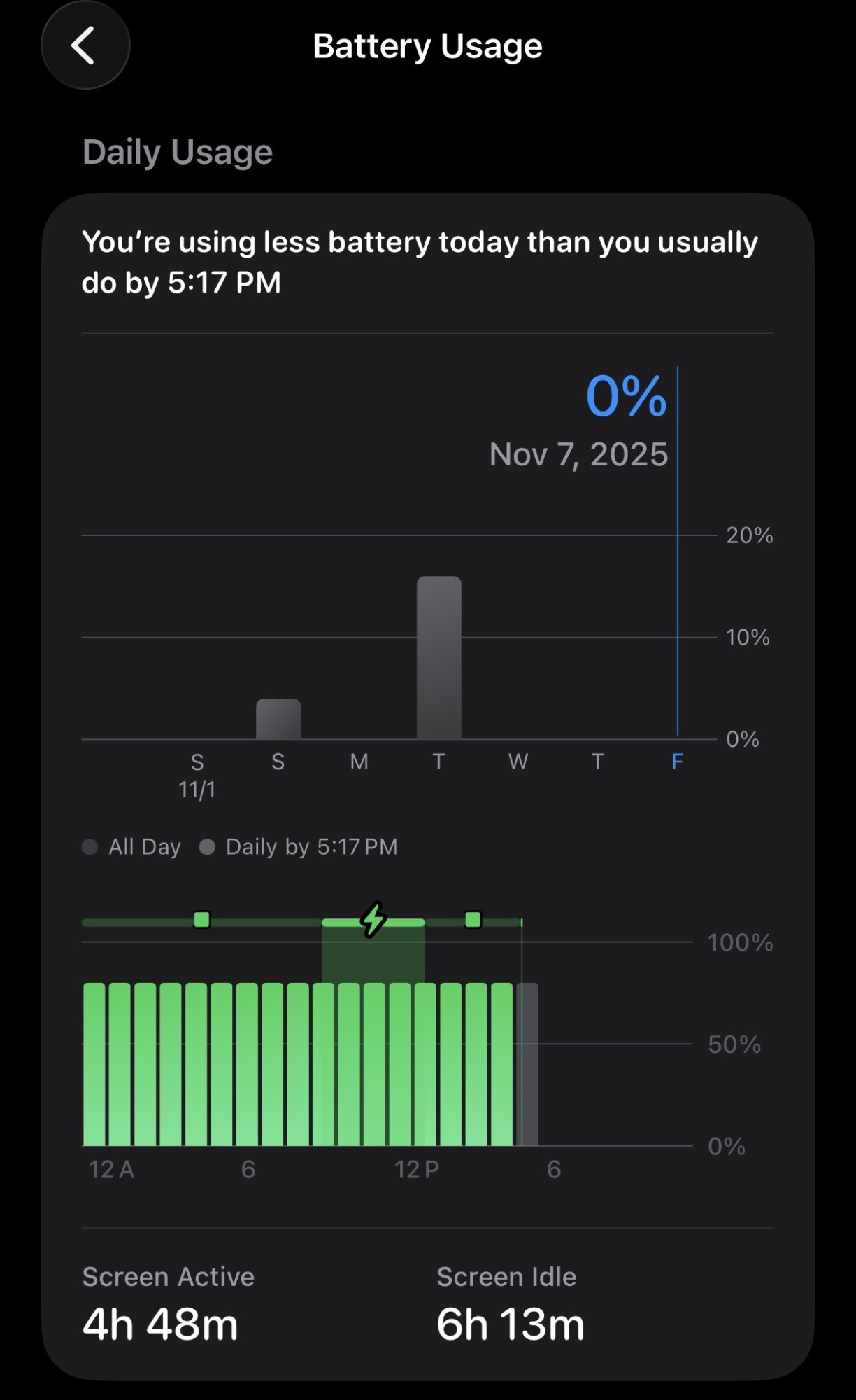 Just interesting observations. This doesn't bother me and it isn't ruining my day. This isn't normal usage for me - but I knew iOS 26 wasn't reporting battery right, and this kind of confirms it to me.