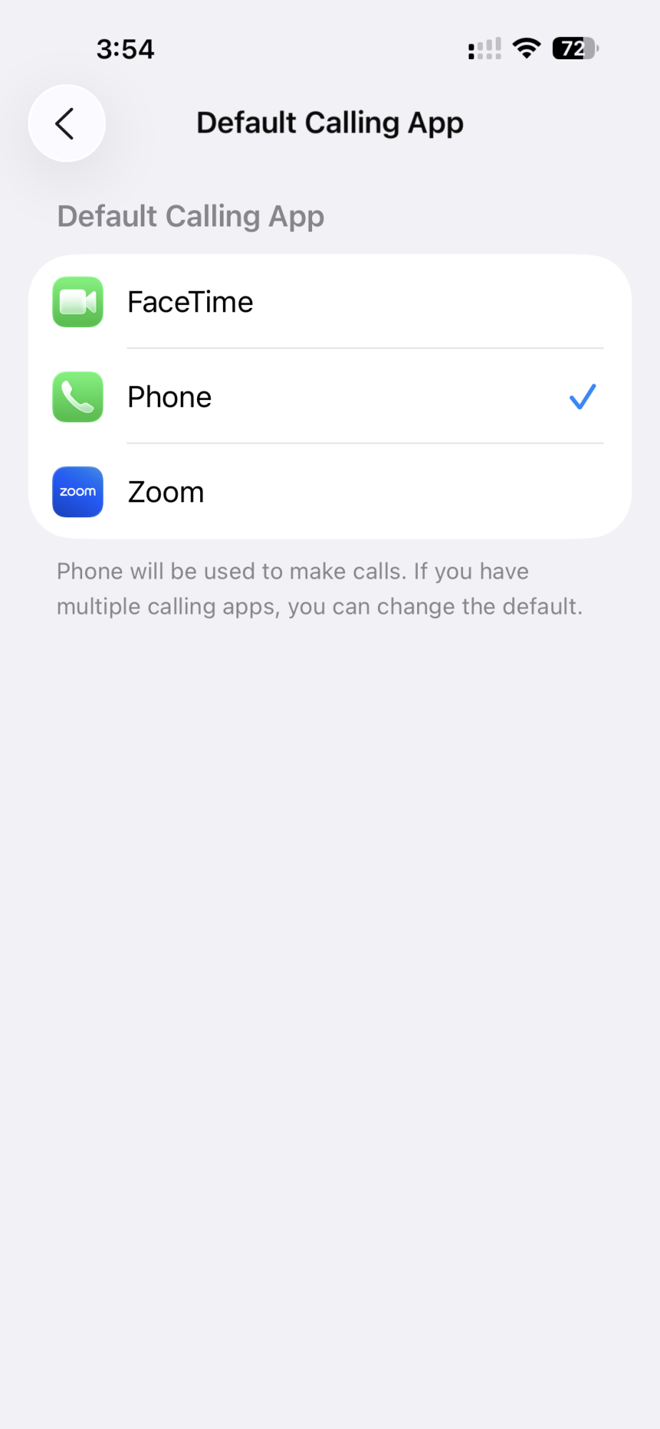 I go into Settings —> Apps —> Phone and the “Default Calling App” is set to FACETIME. I clock on it to change it but the following screen already shows it set to “Phone”