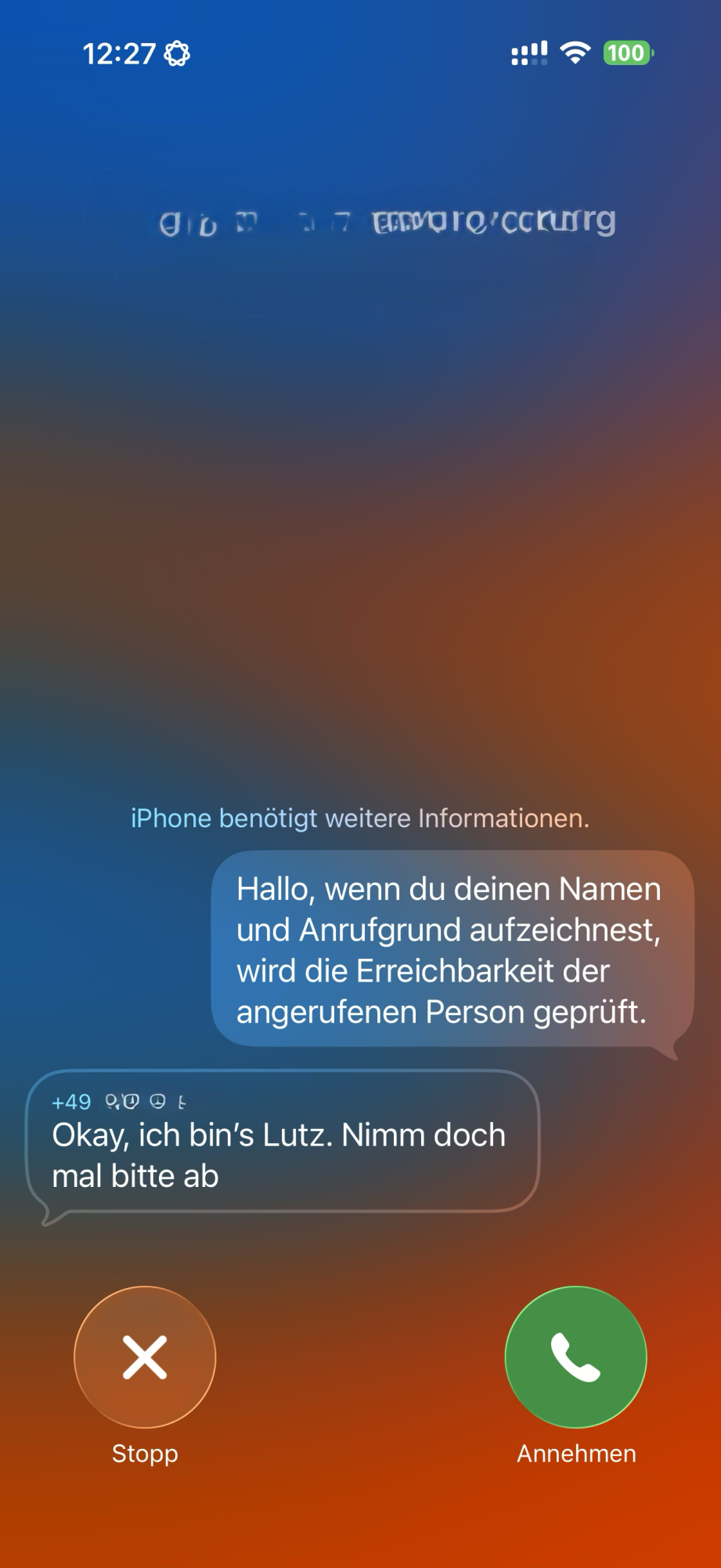 You have to click the Dynamic Island to see what happens… it displays the greeting and what the caller says… in the bottom corner is a green telephon button in case you want to take the call …