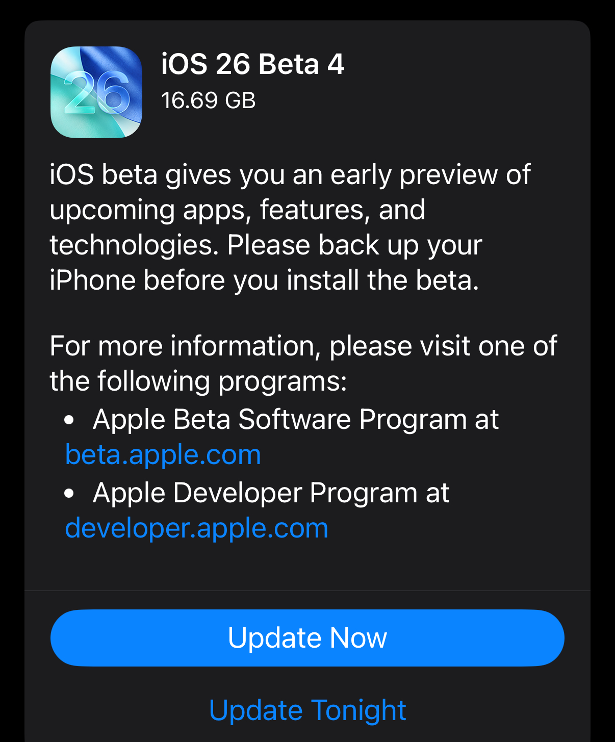 By the time it downloads and updates, the next Beta will be out… 😂