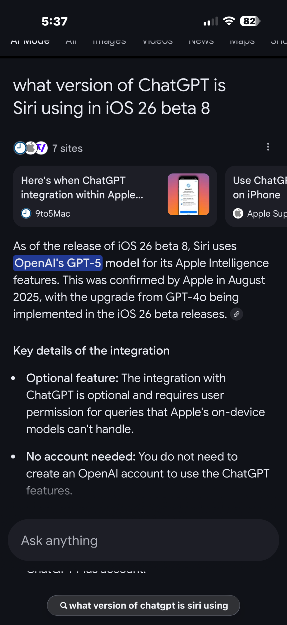 Go to Siri in settings and update ChatGPT. Then ask and it will reply 5@teeshot44 I believe they're referring to ChatGPT via Siri.