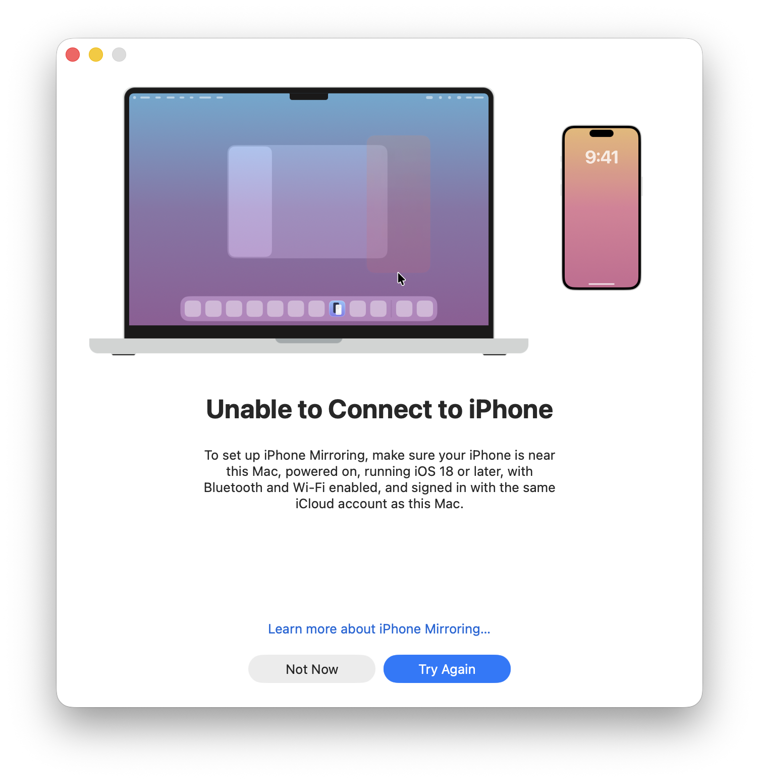 ChatGPT says ...iPhone Mirroring ceased working from one day to the other ... anyone else? Or any hints what to test?View attachment 2549747