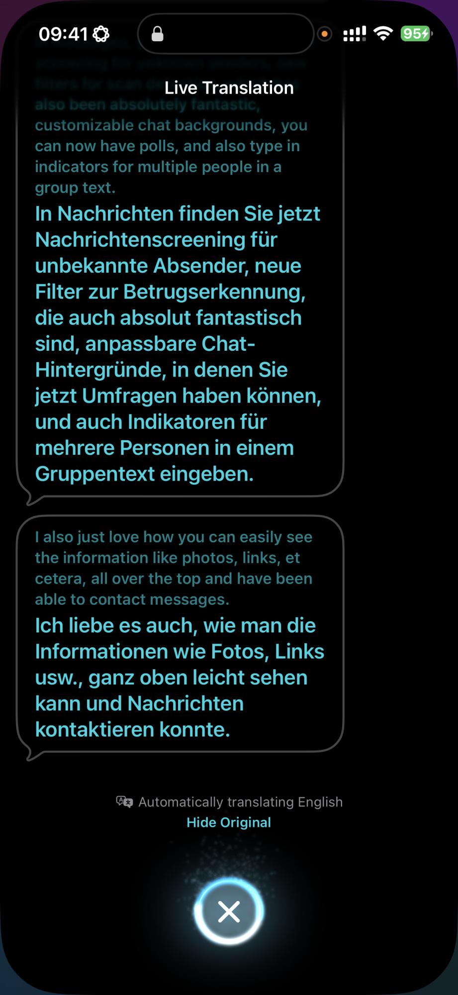 The Live translation feature gives really a „Babelfish" mood, even i.e. the EN>DE translation isn’t perfect (as a short part of Dan’s new YouTube shows) but definitely a step into the future …